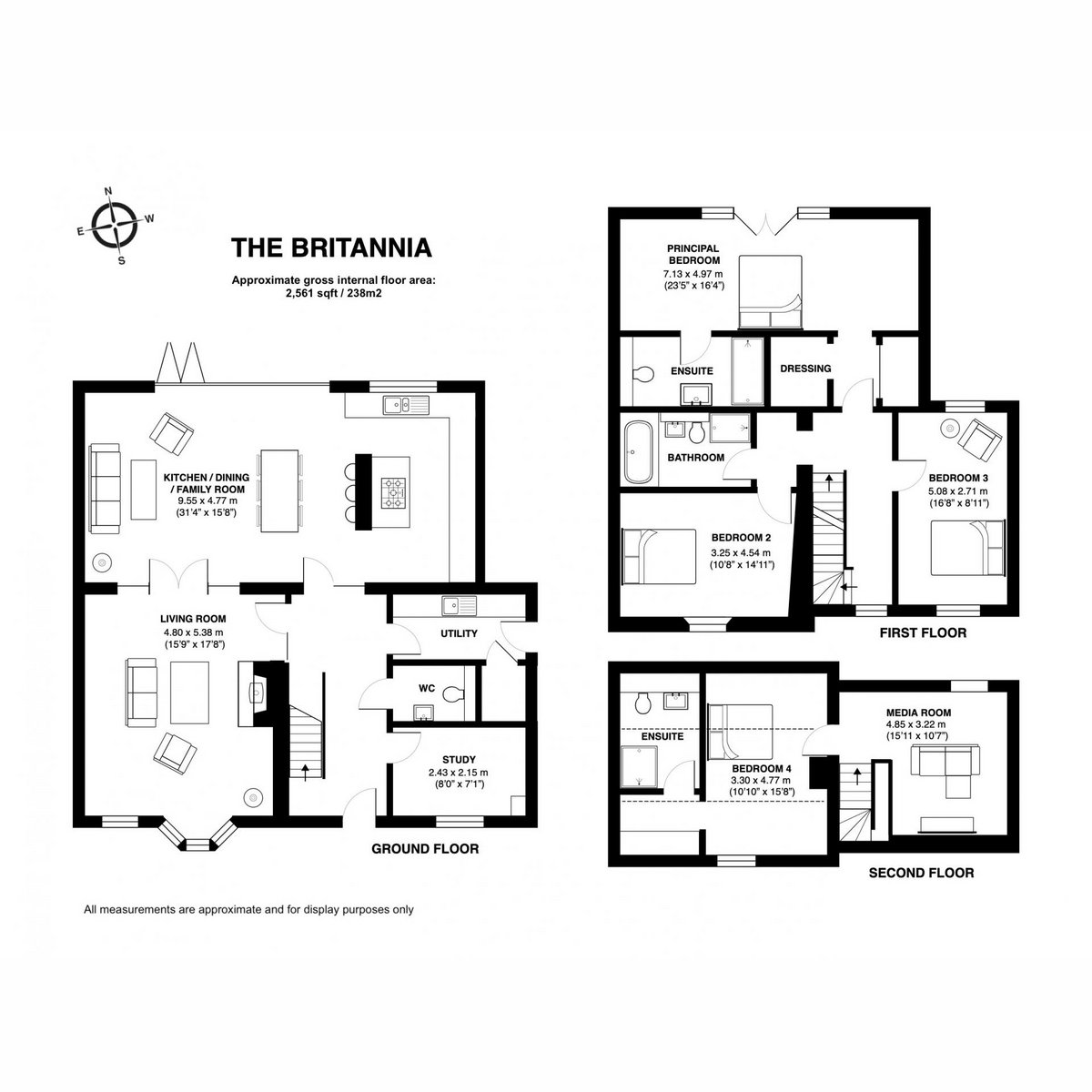 The first floor of The Britannia is dedicated to rest and relaxation, with three beautifully appointed bedrooms, each blending modern comfort with timeless character.