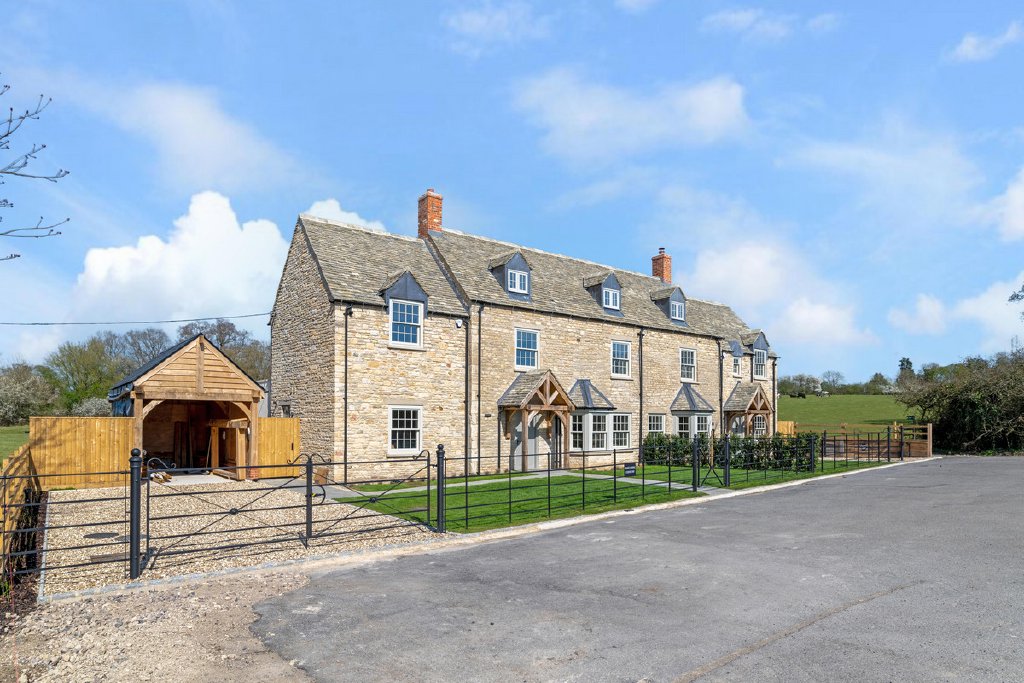 To the front, estate fencing and traditional planting- including lavender- frame the home beautifully. To the rear, a modern rendered elevation contrasts elegantly with the Cotswold stone frontage. A private driveway offers off-road parking for several vehicles, in addition to a stylish carport with an integrated electric vehicle charging point. Adjacent to the carport is a convenient outside storage shed, providing further practical space.