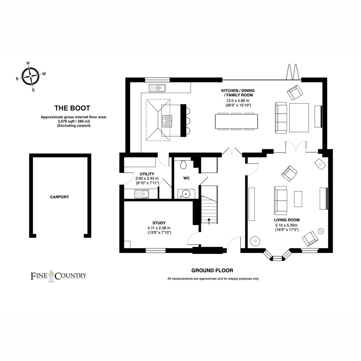 Also on the ground floor is a study with Cat7 cabling, a fully fitted boot room, a cloakroom/WC, and a utility area discreetly housing the high-efficiency Worcester Bosch boiler. Underfloor heating runs throughout, with Knightsbridge fittings, 5 amp lamp sockets, and a pre-wired AV/data infrastructure ensuring the home is future-proofed without compromising on character. Full Fibre Gigaclear broadband is connected, offering ultra-fast and reliable connectivity.