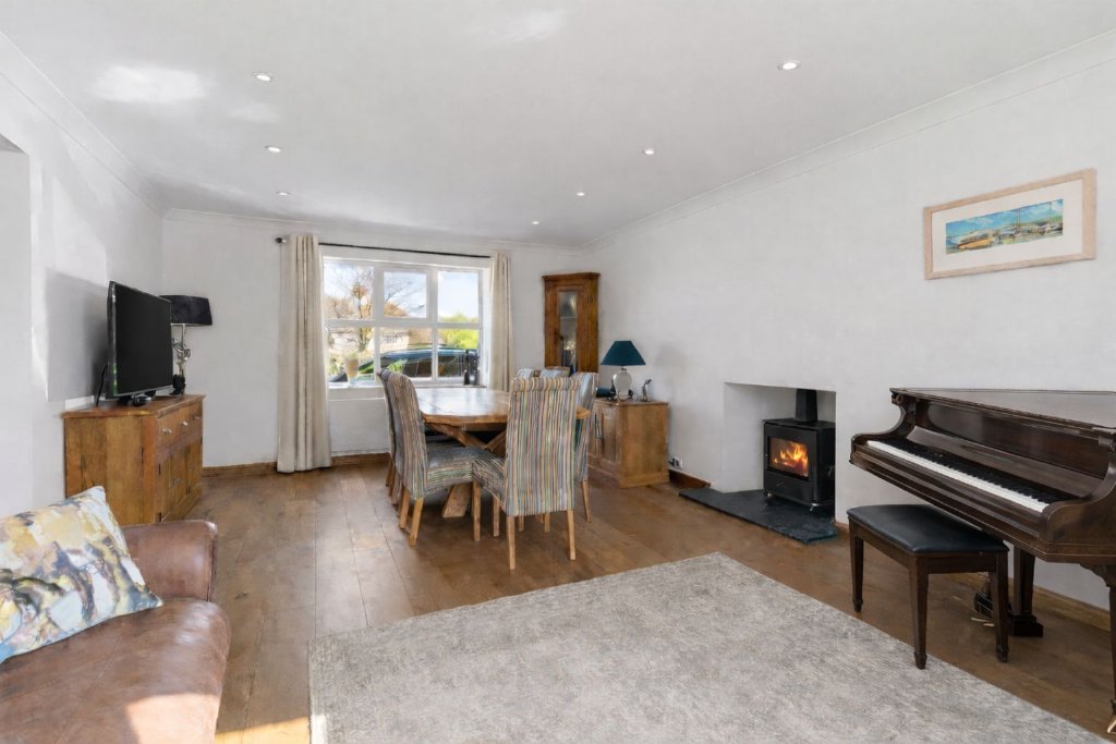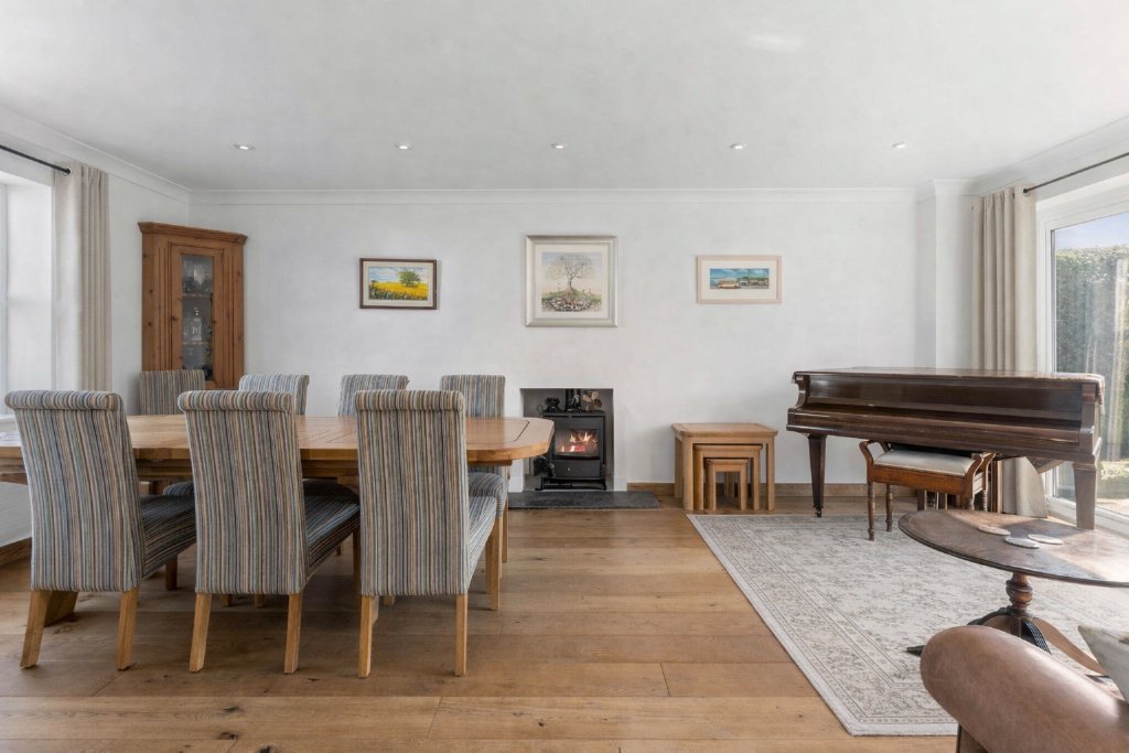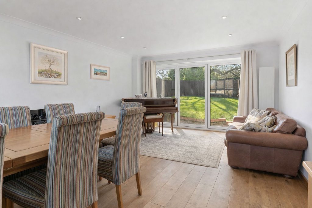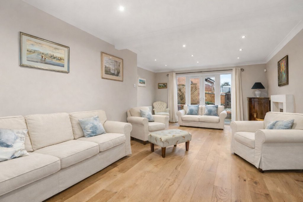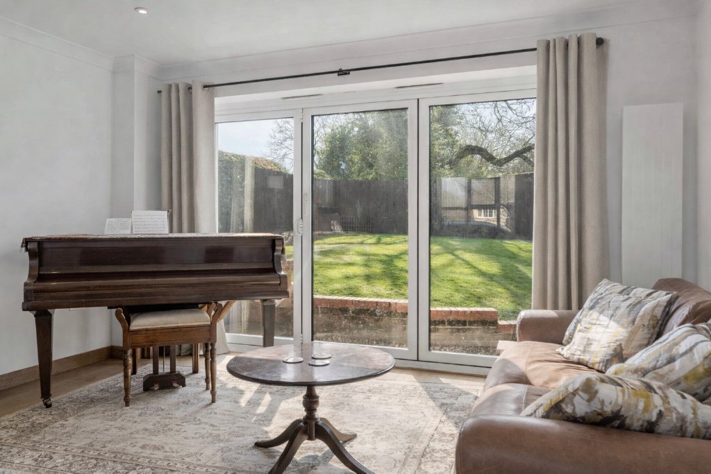 The light and spacious entrance hall has an attractive staircase, a cupboard under the stairs and a downstairs cloakroom before leading you into the first of two large reception rooms. This room has dual aspect with a set of doors overlooking the patio at the rear, and a large window at the front bringing in lots of natural light. The wood burning stove is a charming feature of this substantial space which is light and airy; just right for entertaining. The kitchen diner sits in the heart of the house and functions beautifully as a sociable space for preparing and enjoying family meals. The built in electric oven allows for plenty of work surface, and separate gas hob has an extractor above. Again, light floods in from both front and rear of the house and this sizeable area works well on a practical level, leading off to a utility and the back door giving access to the back garden. The second reception room forms part of the double extension, built in 2019 and has given this property another generous, light filled space. This room feels warm and roomy with its wood burning stove and bi-folding doors overlooking the lawn. This room currently houses a formal dining table and piano, demonstrating what a versatile space it is, as could lend itself to a number of uses.