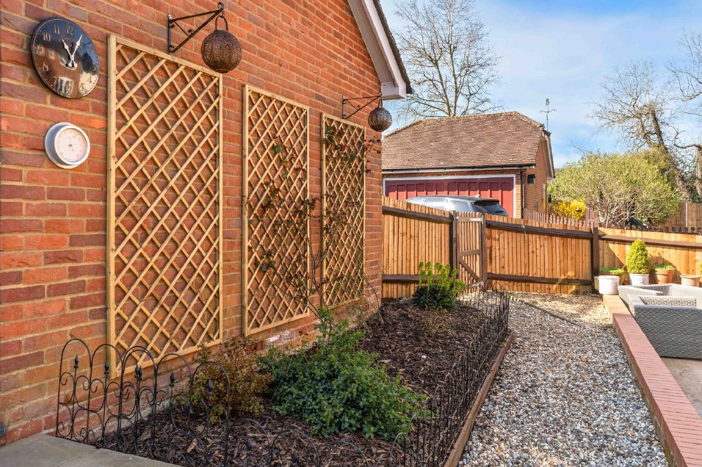 The shared driveway of Ashby House is well kept with neatly trimmed hedges and offers parking for at least two cars at the front, with two more space at the rear in front of the double garage. Accessing the back garden through a small gate by the garage, there is a sloped gravel path leading you down to the patio. This outside area is perfect for summer entertaining with plenty of room for seating and al fresco dining. Edged by smart brickwork, the south facing garden gets plenty of sun and the lawn is bordered with an attractive hedge and fence panels. There is extra space at the side of the property for storage and a gravel path leads you around to the front lawn and gravel driveway. Ashby House has 8.3 Kw photovoltaic solar panels installed on the rear roof, generating electricity and then storing excess energy with a 10 Kwh battery. The house is heated using a combination of LPG gas fuelled radiators, with a tank sited underground, wood burners and electric towel rails.