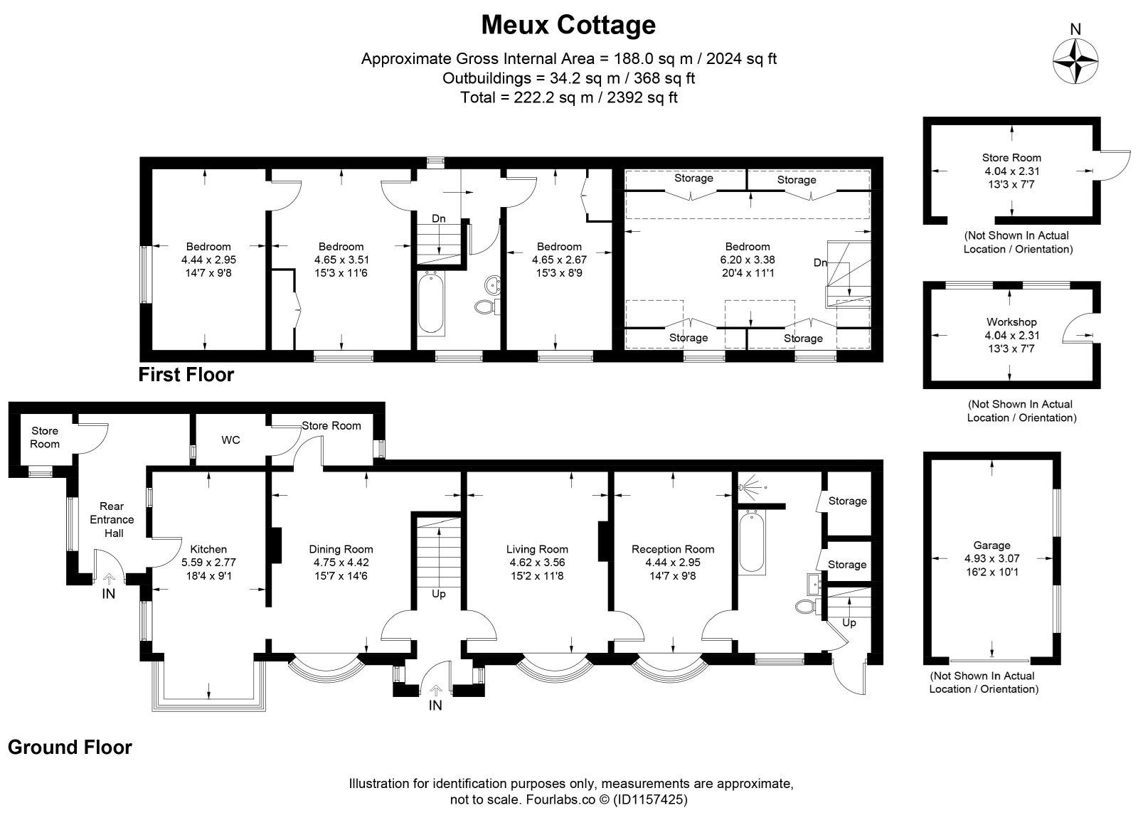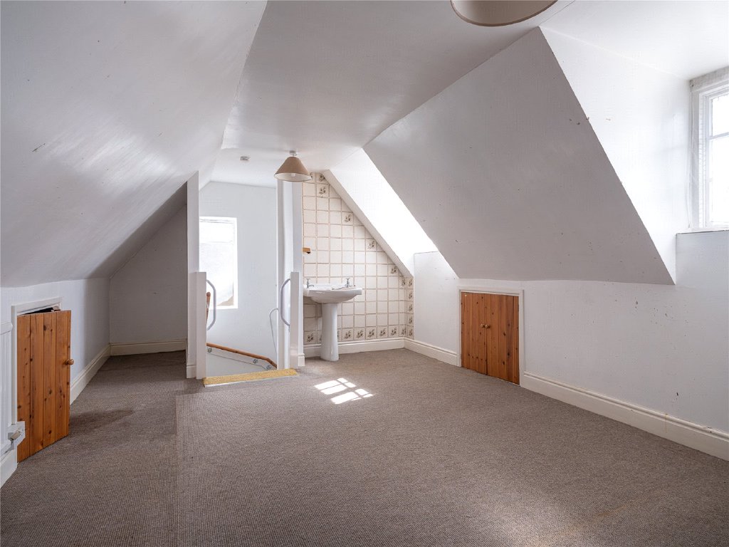In the main house are 3 double bedrooms (2 adjoin each other) and family bathroom. As with downstairs, the opportunity is here to renovate and potentially remodel. The fourth bedroom is accessed via second staircase, which also has a separate entrance door.