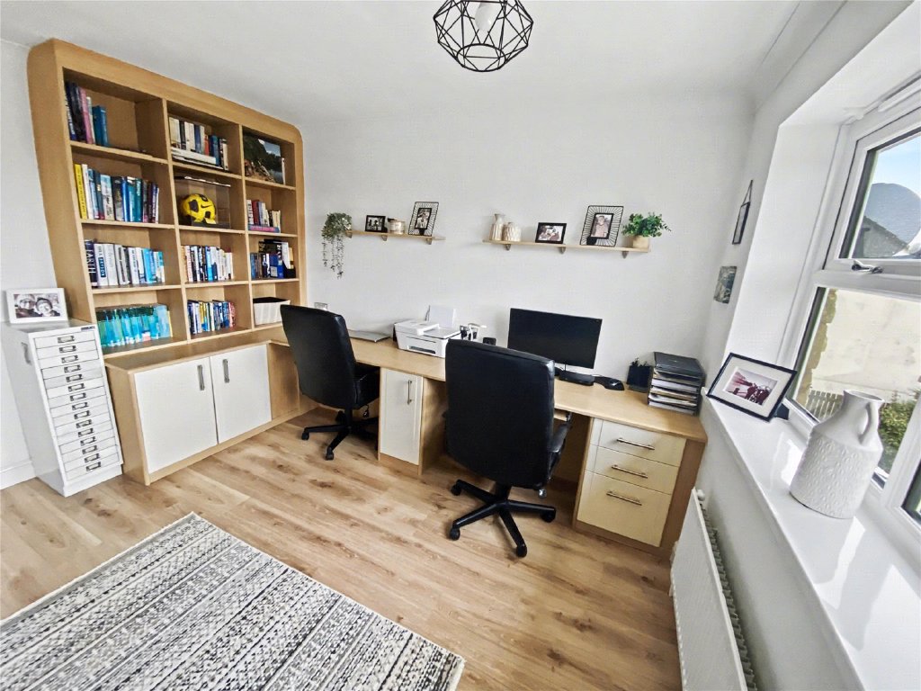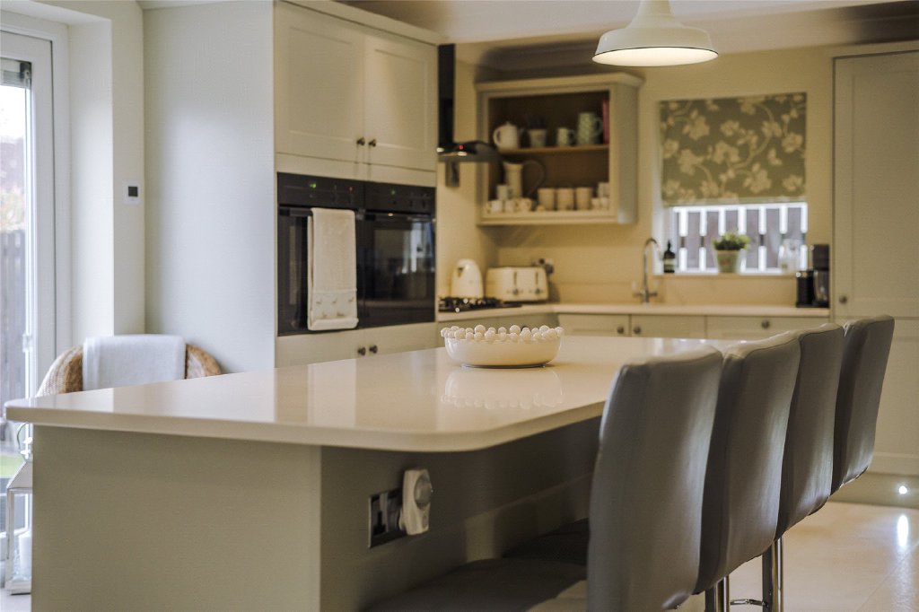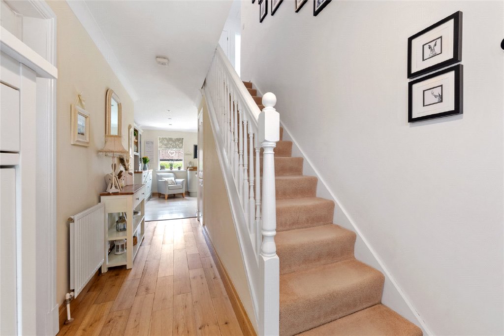 The principal bedroom features built-in wardrobes and a stylish en-suite shower room, creating a luxurious private retreat. The guest bedroom also benefits from its own en-suite. There are three further bedrooms, with two of the bedrooms having fitted wardrobes, and the fourth bedroom also features bespoke fitted Sharps office furniture, they are all served by a contemporary and well-appointed house bathroom. In addition, the property is heated by an efficient 3 year old Viessmann gas boiler supplying radiators and a large recently updated hot water tank.