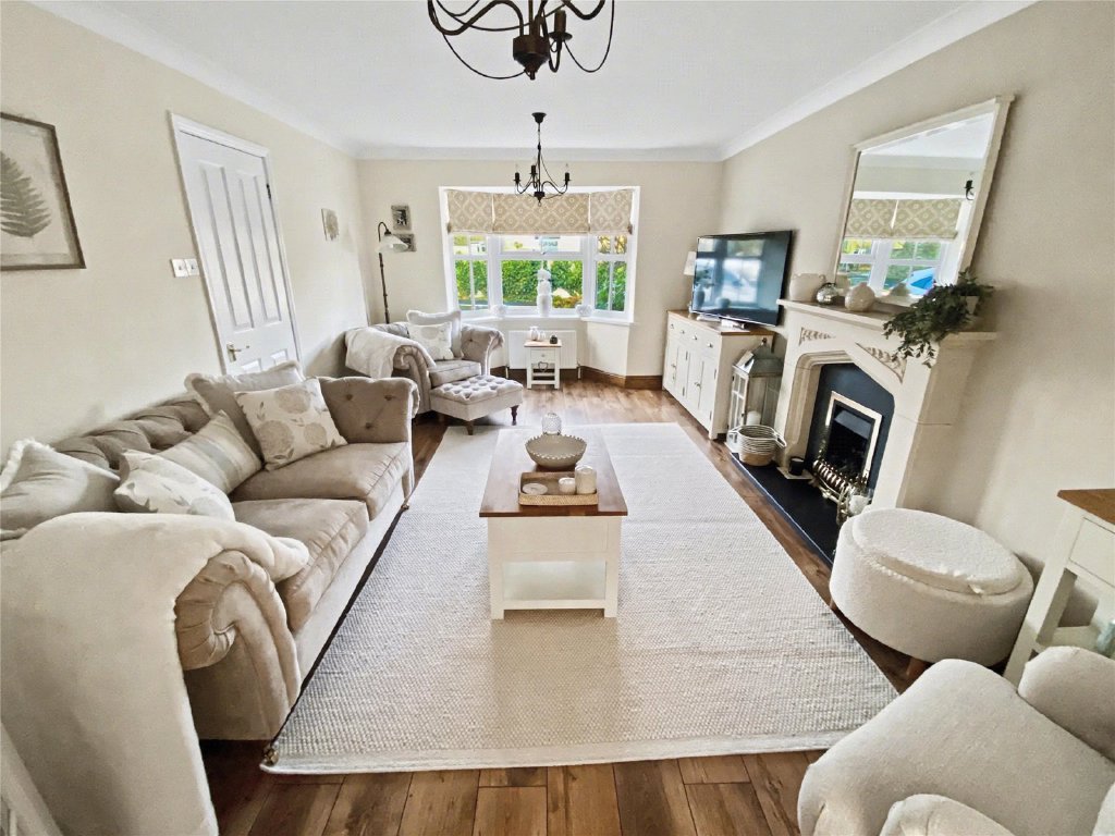 Outside, the property enjoys a well-maintained front garden and a driveway providing off-street parking for two cars in front of a single garage. To the rear, you'll find a delightful south-facing garden, mainly laid to lawn, with two paved patio areas—perfect for entertaining or relaxing in the sun. A charming garden room adds an extra touch of luxury, offering a peaceful retreat, home office, or creative space