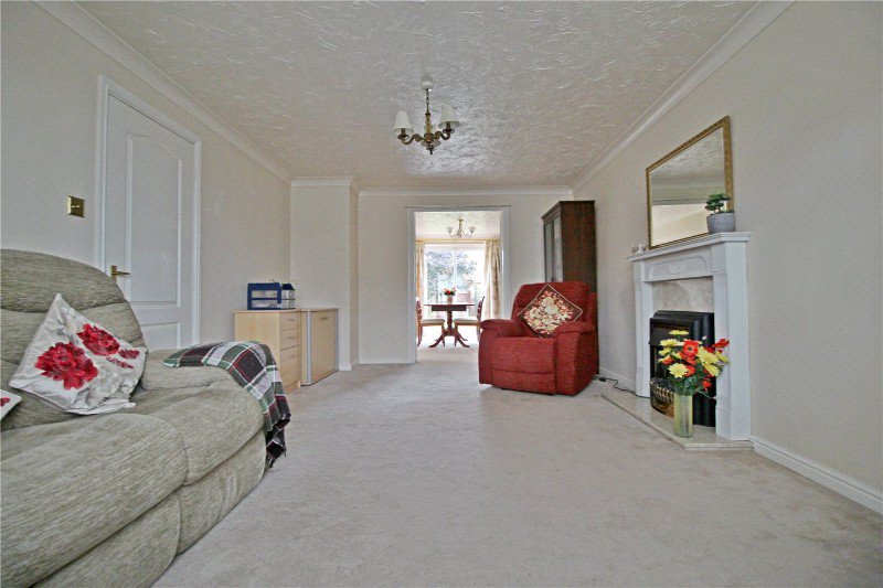 16’4 x 11’5 a bright sitting room with UPVC bay window to the front aspect, feature fireplace with electric fire, radiator, power points and TV point, double doors opening through to: