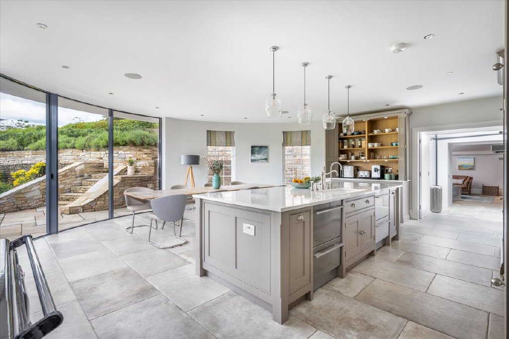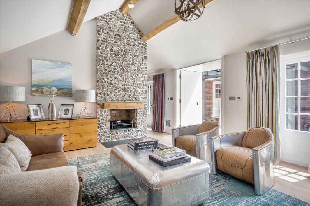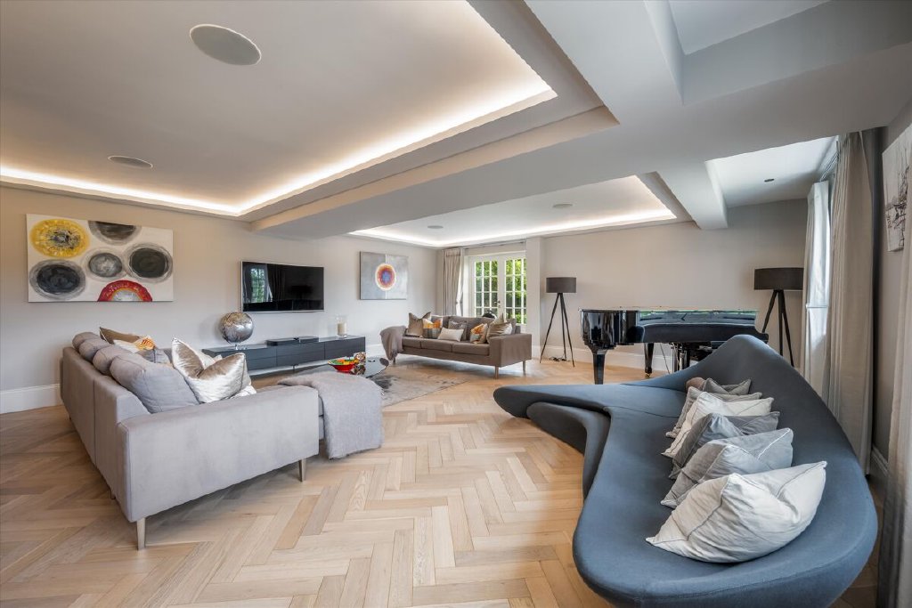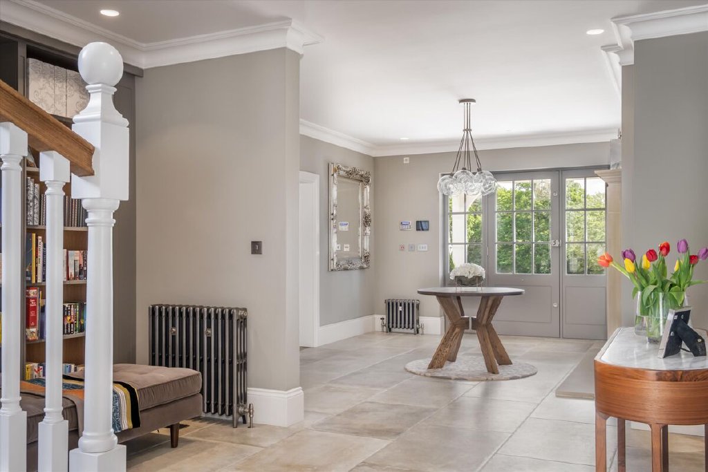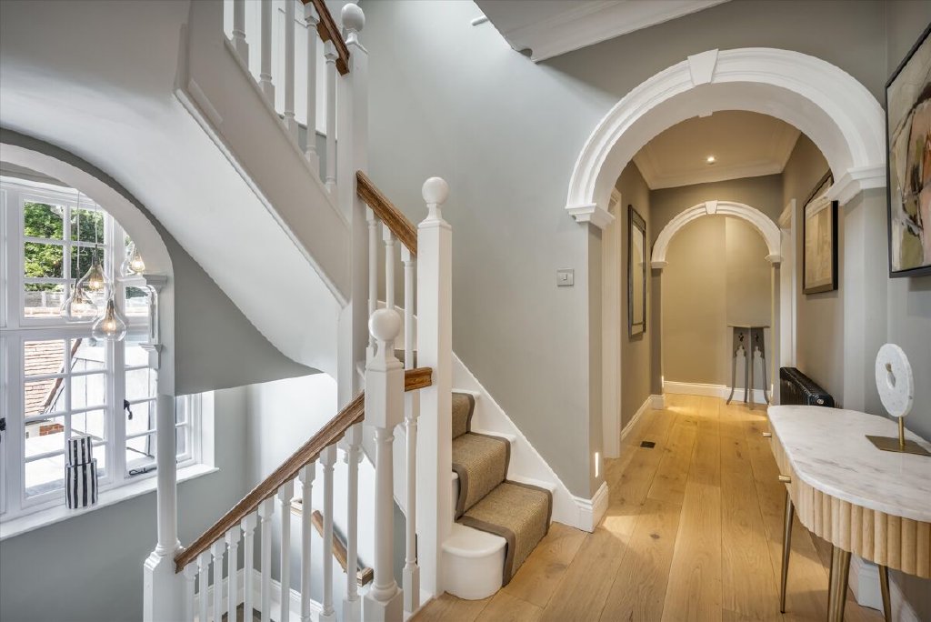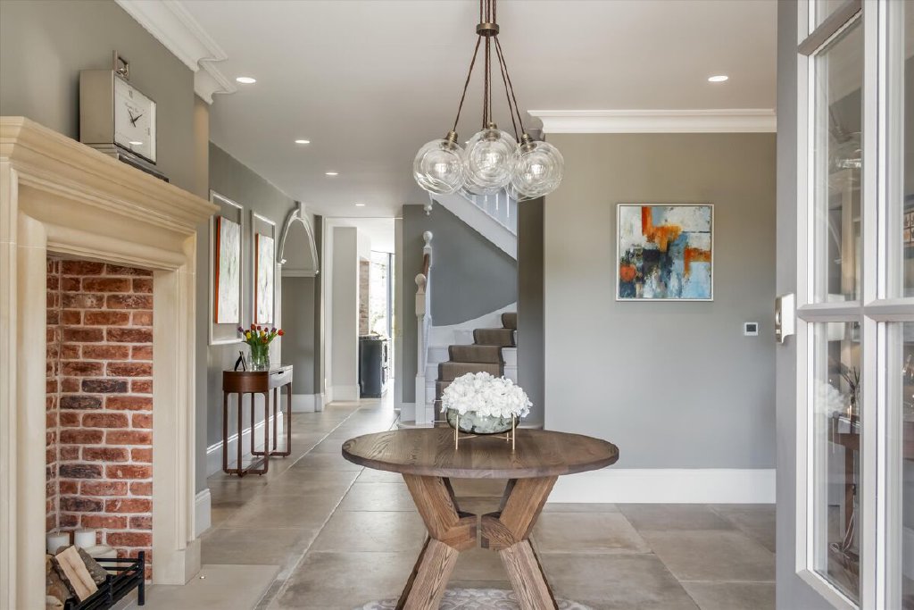 A serious entertaining house, North End has been fully refurbished and modernised back to bare-brick specification in 2022 during our client’s ownership, incorporating many of the old outbuildings seamlessly into the main house and resulting in the perfect modern country house, fit for the next century and beyond. The kitchen/breakfast room to the western elevation is of particular note and features stunning curved, glazed sliding doors by Sky-Frame, an internationally renowned Swiss glazing company, providing stunning views over the formal gardens and southwest towards the Downs. Leading directly from the kitchen/breakfast room via an ingenious glazed link (also by Sky-Frame) are the family room and cinema rooms. The kitchen as well as these two rooms benefit from wet underfloor heating and together form the social and entertaining hub of the house. To the remainder of the ground floor North End offers flexible accommodation with an abundance of unique reception spaces incorporating the formal drawing and dining rooms as well as a gymnasium, music room, separate study and teenage games room.