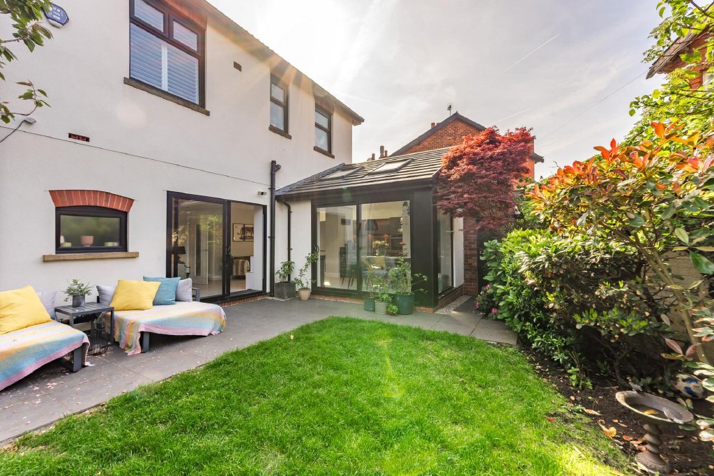 At the rear, the private, enclosed garden is designed for both relaxation and socialising. A spacious paved patio invites alfresco dining and summer barbecues, while the manicured lawn and mature planting beds add seasonal colour and tranquillity. Tasteful outdoor lighting and a practical garden store room, enhance both the ambience and functionality of this secluded outdoor haven.