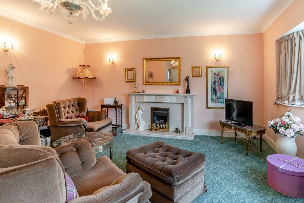 Upon entering the property, a wide and airy hallway provides an immediate sense of scale and elegance. From here, two substantial reception rooms branch off both ideal for formal and informal living. The first, a refined sitting room, boasts a striking bay window framing views of the mature front garden, alongside a handsome fireplace that anchors the space. The second reception area features its own fireplace and offers the flexibility of multiple seating zones perfect for entertaining or relaxing as a family.