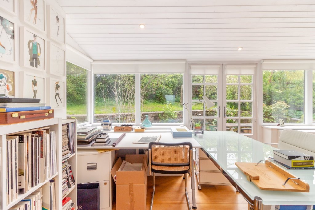 The garden room lies at the opposite end of the house to the sunroom and has a pair of French doors leading outside.