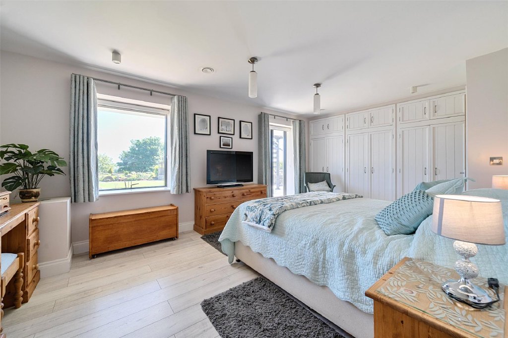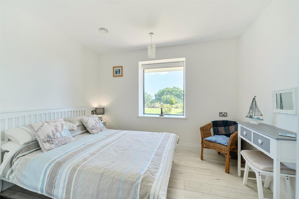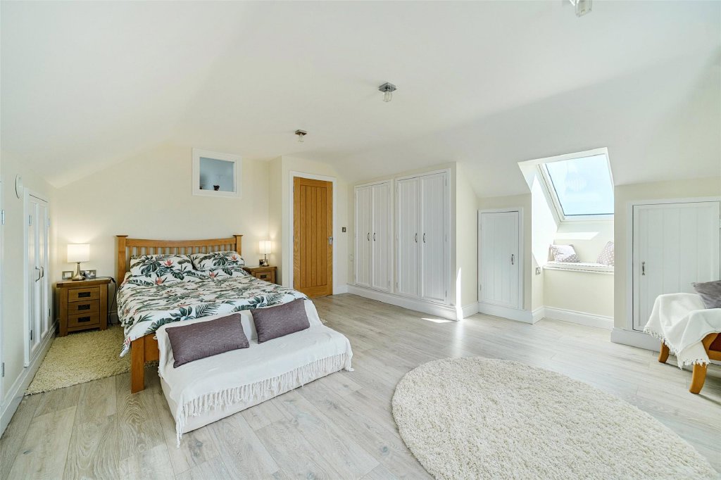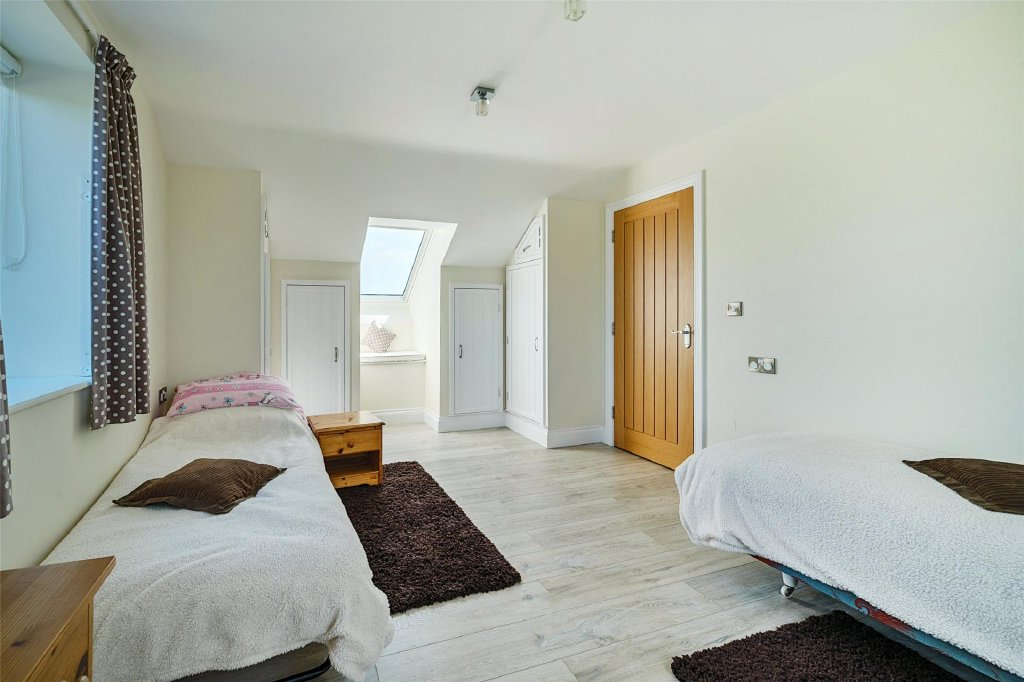 Bedroom accommodation is split across the second and ground floors. The upper floor features two large double bedrooms with roof and traditional windows, both enjoying stunning views. A shared or optional en suite shower room and WC serves this level.