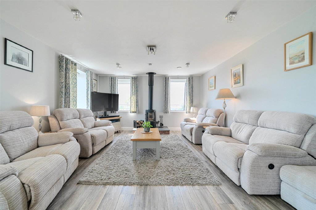 This luxurious three-storey property is expertly positioned to take full advantage of its far-reaching views across Bodmin Moor and the surrounding countryside. Entry begins via a porch leading into a vestibule with sliding doors that open into the main residence. The principal living accommodation is found on the first floor—an open-plan layout that encourages sociability and seamless flow.