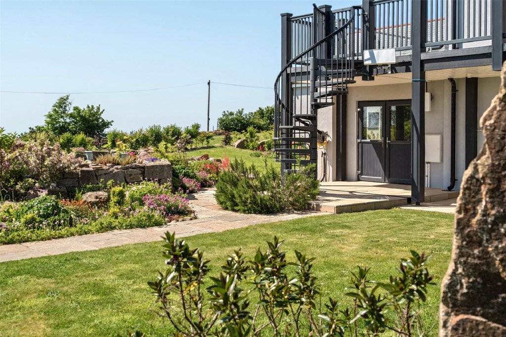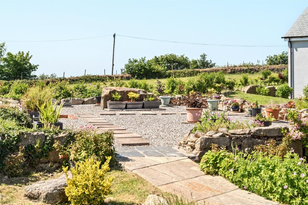 The gardens at Higher Penstroda are a true highlight, meticulously developed by the current owners to provide vibrant, year-round colour. With a variety of shrubs, perennials, and young trees, the outdoor space is both tranquil and impressive. A paved and tiled patio occupies the footprint of the former dwelling and serves as a peaceful vantage point to admire the spectacular views.