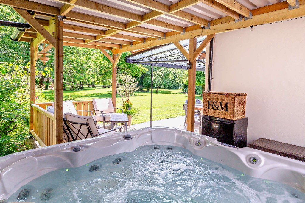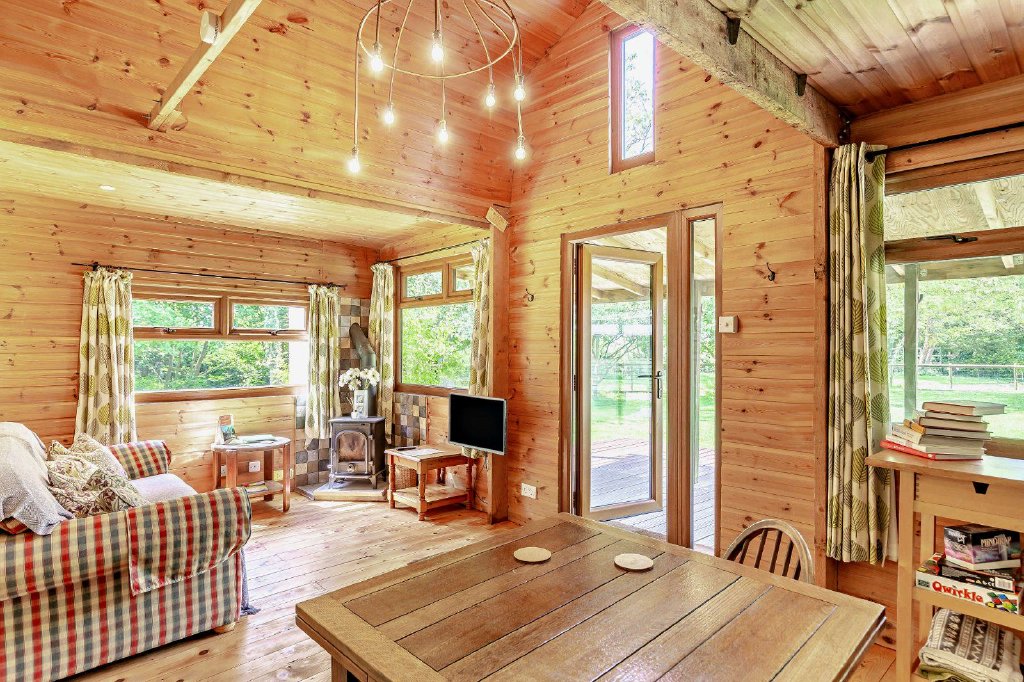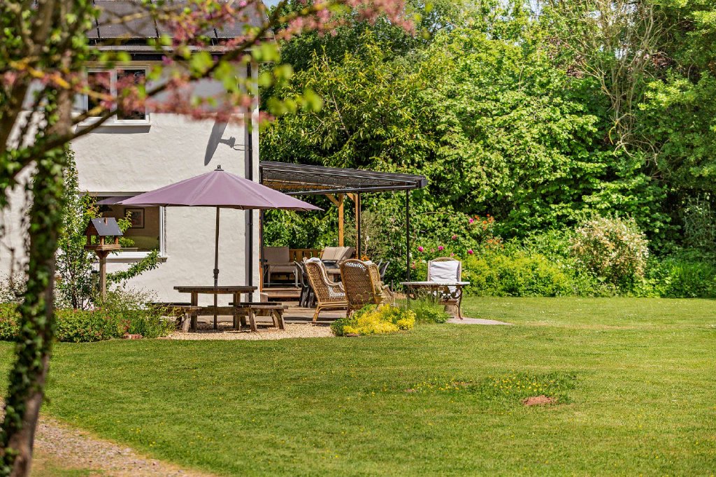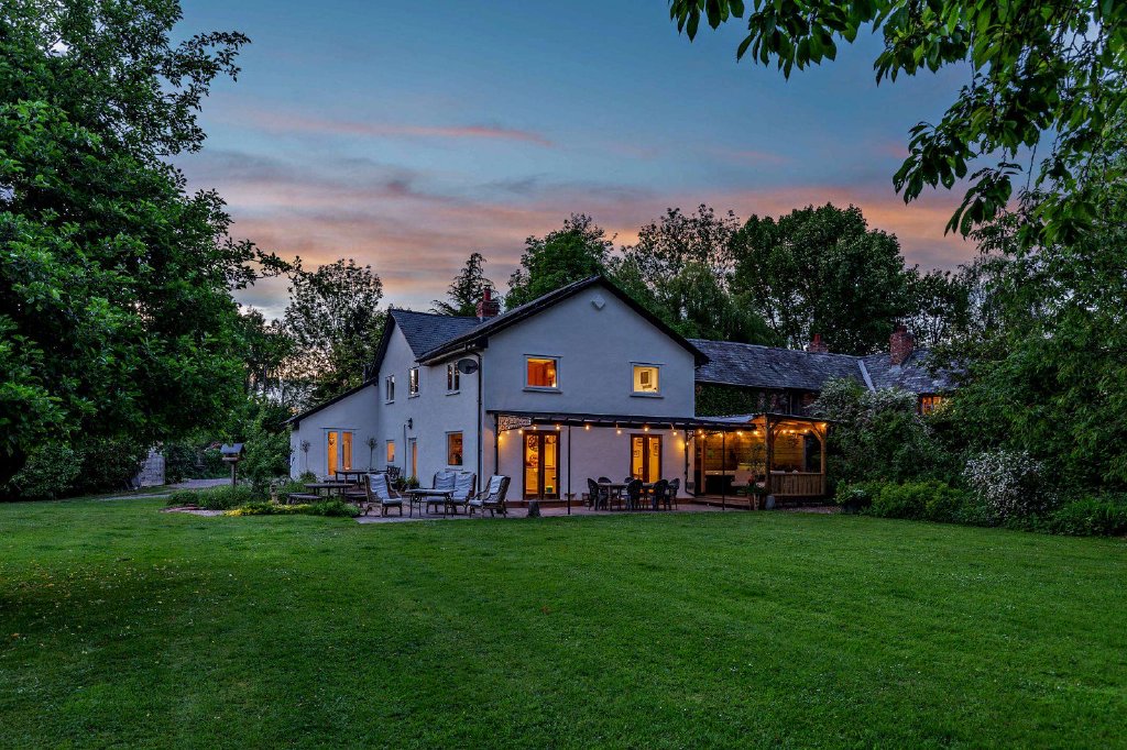 At the front of the property there is a parking area with space for several vehicles, and a track leading through the gardens to the cabin and separate outbuilding, which provides a large garage/workshop, log store, library and two office spaces. The gardens at the rear of the house include a wrap-around terrace with a veranda, well-suited for al-fresco dining and entertaining. Adjacent to the terrace is a covered deck with a hot tub, overlooking the garden. There is also a sauna with its own changing area, accessed via the terrace. Beyond the terracing, the rolling lawns are dotted with mature trees and bordered by established hedgerows, shrubs and trees for a sense of privacy and seclusion. The grounds border Hillfarrance Brook to one side, adding to the sense of tranquillity, while the sheltered gardens at the rear provide an ideal setting for the cabin, with its vegetable garden and paved seating area.