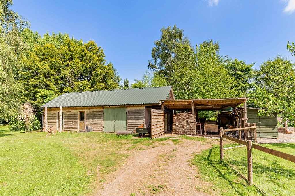 - Detached outbuilding with garage/workshop, library and office space