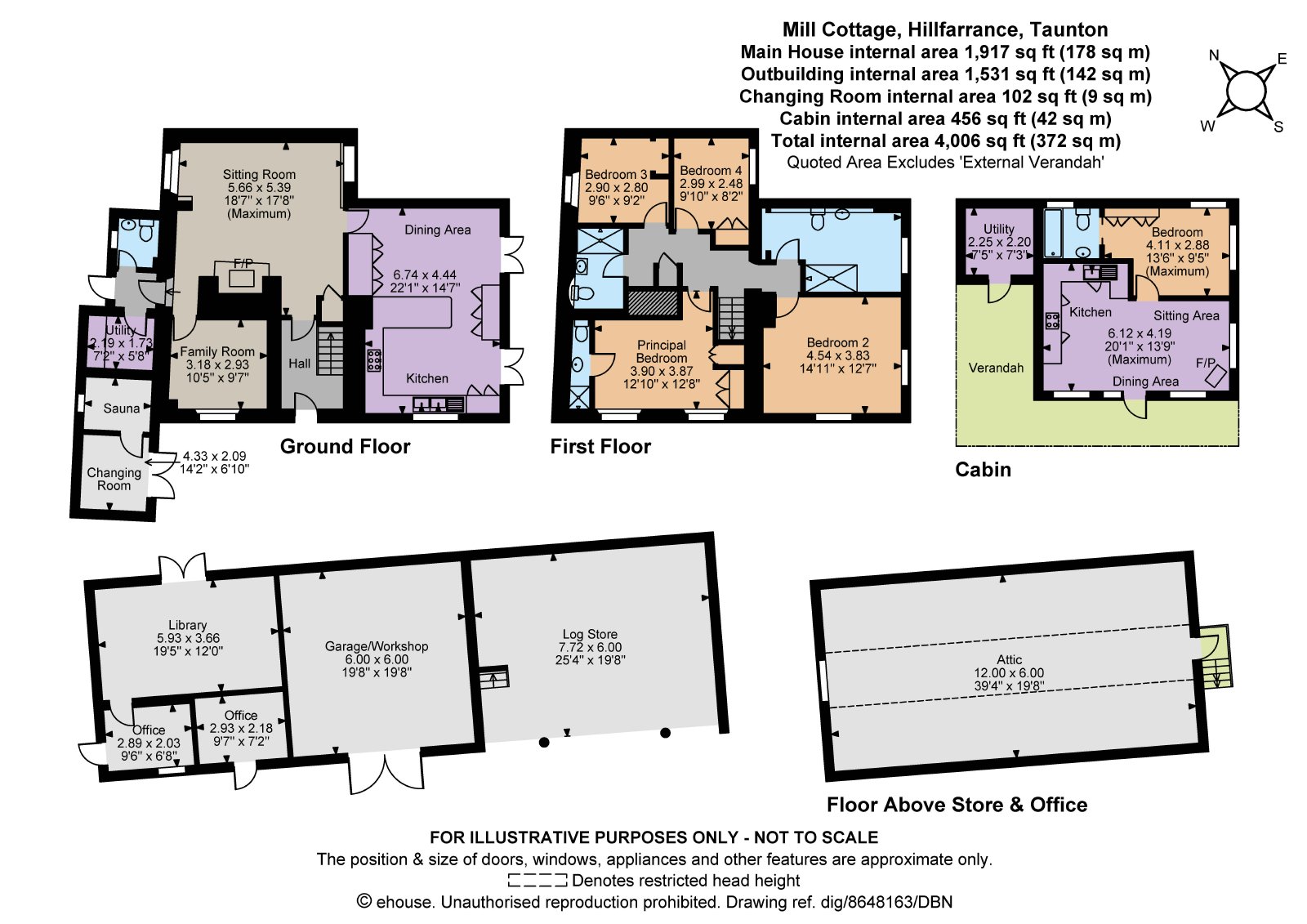 Mill Cottage is a delightful period property offering characterful accommodation with charming original features, including exposed timber beams and handsome fireplaces, complemented by tasteful modern décor and fittings throughout. It has a range of lifestyle features and expansive outdoor spaces, perfect for family living and hosting retreats. Tucked away in the heart of Somerset’s peaceful countryside, Mill Cottage is a rare opportunity to own a piece of English history, being part of an ancient mill. The site was recorded as early as 1086. The charming four-bedroom home is nestled within over 2 acres of mature gardens, bordered by the gently flowing Hillfarrance Brook and mill leat. Set in the vibrant village of Hillfarrance - with its popular pub and community spirit - the property offers the best of both worlds: rural tranquility just 10 mins from Junction 26 of the M5 and the historic county town of Taunton. The main ground floor reception area is the well-proportioned sitting room with its heavy timber beams overhead and original fireplace, fitted with a woodburning stove. The cosy family room provides further space in which to relax, as does the kitchen and dining space with french doors opening onto the sunny terrace at the rear, allowing floods of natural light throughout. The kitchen has modern shaker-style units, a breakfast bar with a wooden countertop, a split butler sink and a range cooker. The utility room provides useful further home storage. Upstairs there are four well-presented double bedrooms, including the dual aspect principal bedroom with its en suite shower room and built-in storage. The first floor has two further family shower rooms, serving the additional three bedrooms. Set within the secluded gardens, the detached cabin, currently used as a successful Airbnb rental, offers valuable and flexible accommodation, also ideal for use as an annexe or guest lodgings. It includes a comfortable and attractive open-plan sitting area, dining area and kitchen with a woodburning stove and a door opening onto the veranda. The kitchen is fully equipped with fitted storage and all the necessary appliances, while the cabin also includes one double bedroom with an en suite bathroom, plus a utility room. Rental figures are available on request.