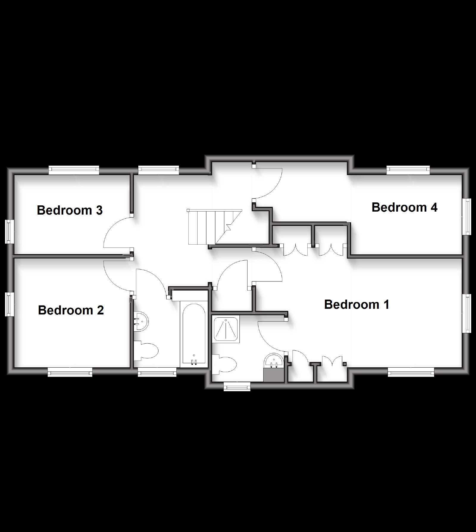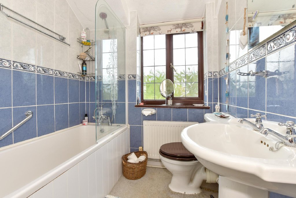 Upstairs, the principal bedroom offers built-in wardrobes and dual-aspect windows that flood the space with natural light. Three further bedrooms, all with countryside views, share a family bathroom complete with full tiling, a paneled bath, and shower attachment.