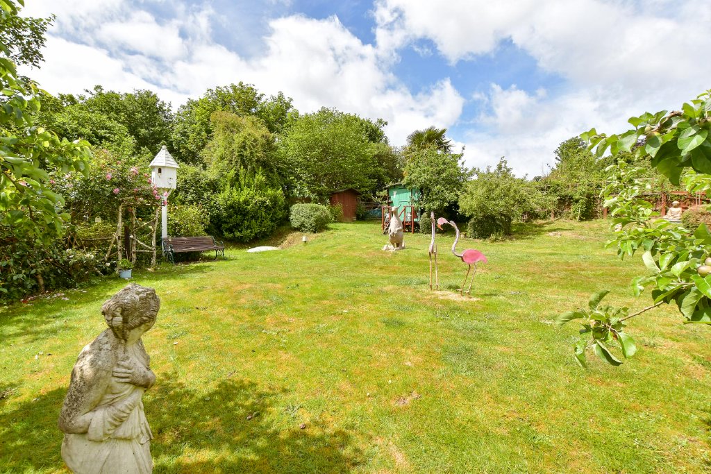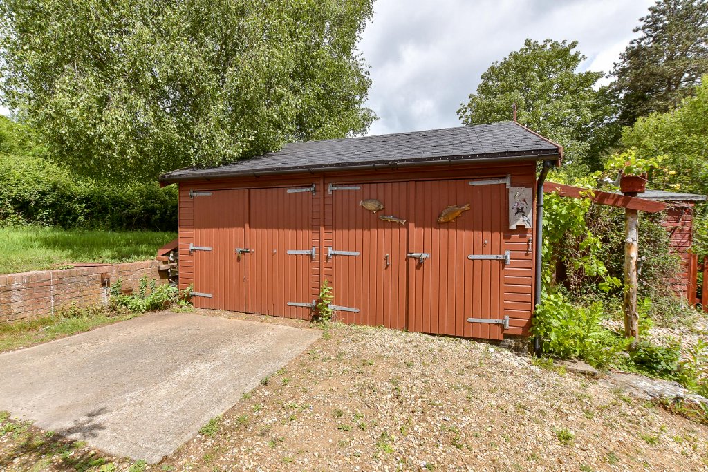 Outside, the property truly comes into its own. Expansive lawns, mature trees, flower borders, and a large patio area invite you to enjoy outdoor living throughout the seasons. A gravel driveway offers ample parking for several vehicles, as well as the addition by the current owners, of a large, detached timber double garage. A garden shed and thoughtfully placed boardwalk complete the outdoor space.