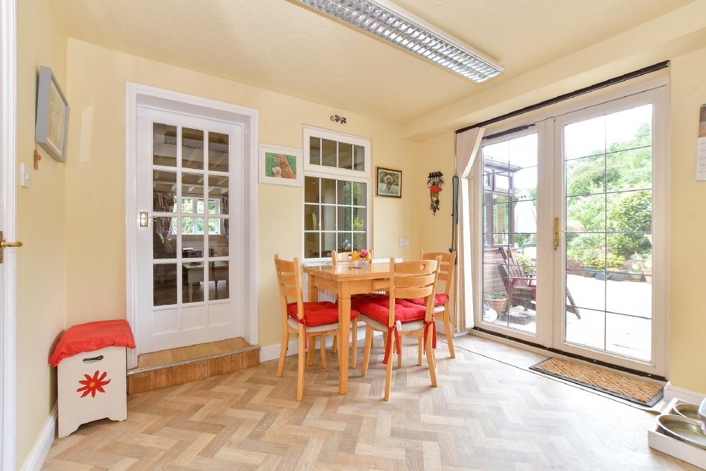 The versatile layout includes two comfortable reception rooms and a large, bright conservatory, offering an ideal space for relaxing or entertaining while enjoying uninterrupted garden views. A characterful sitting room with a beamed ceiling and a brick fireplace with a solid fuel log burner forms the heart of the home, creating a warm and inviting retreat for the cooler months. Adjacent to this, a separate study/office makes working from home not just possible but thoroughly enjoyable, with views to inspire and space to focus.