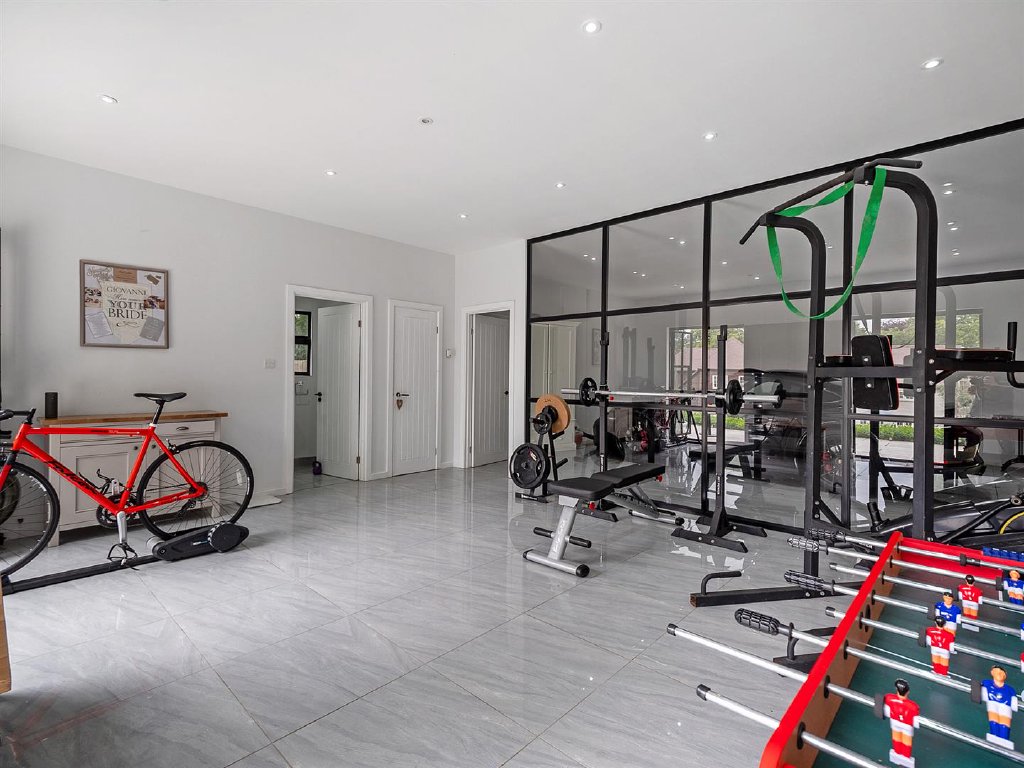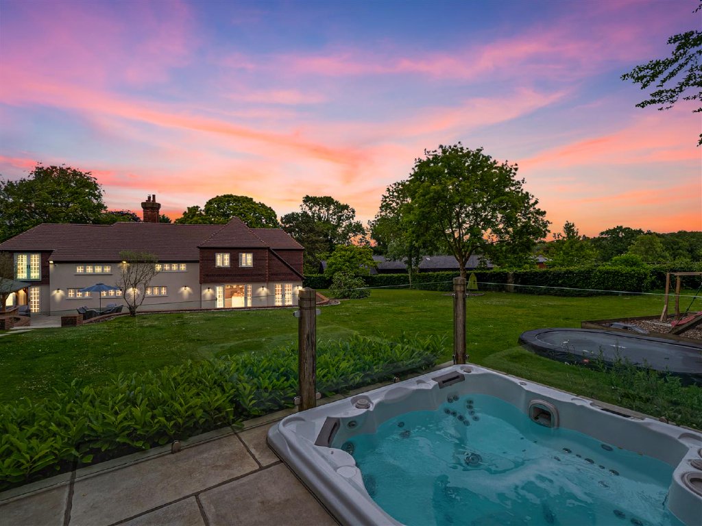 Additional features include a gated entrance, a grand hall with a bespoke wine cellar, and a double-aspect fireplace connecting the living and entrance areas, all set against sweeping countryside views. For equestrian enthusiasts, a reputable livery yard is conveniently situated nearby, offering a comprehensive range of services to accommodate your horse. From the comfort of your home, you can enjoy the reassuring sight of your equine companion grazing in the adjacent paddocks, blending country living with equestrian convenience.