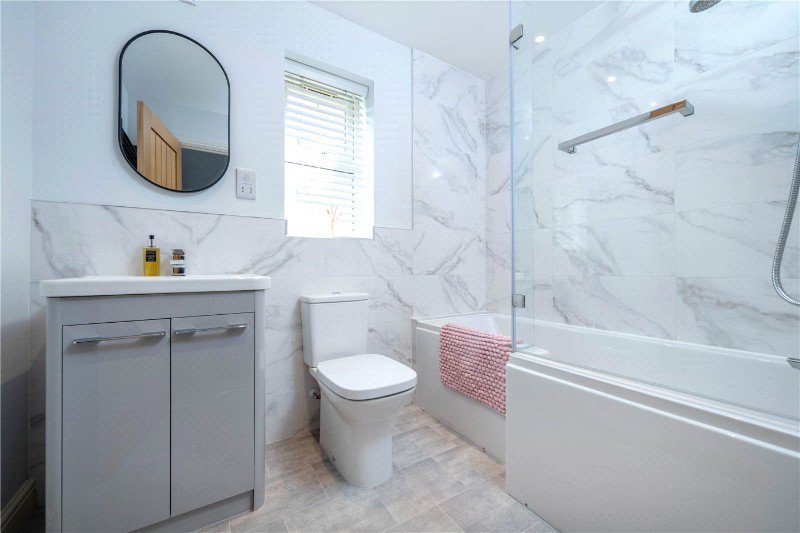 Internally, this superb home has been finished to an exceptional standard, featuring a German-engineered RotPunkt kitchen complete with integrated Bosch appliances. The ground floor enjoys underfloor heating, and the carpets and flooring throughout have been upgraded from the standard builder’s specification, adding a further sense of quality. The property is immaculately presented and ready to move straight into.