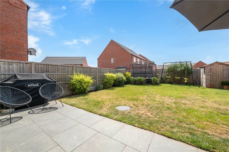 Beautifully positioned on the edge of this modern development and accessed via a private drive, the home enjoys uninterrupted field views to the front and benefits from a desirable south-facing rear garden. The garden has been thoughtfully enhanced with an extended patio—perfect for outdoor dining and entertaining.