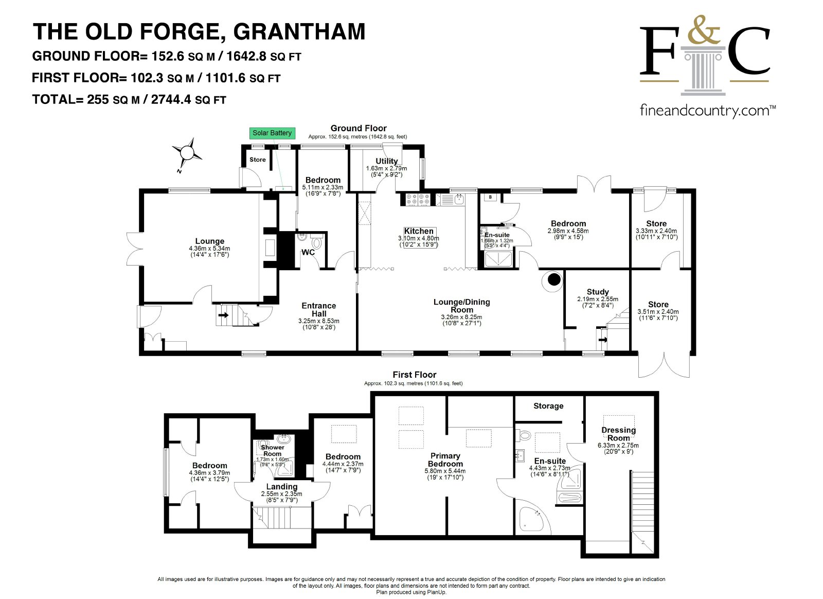 - Large gravel drive with space for up to three vehicles / Solar panels, with a dedicated battery store