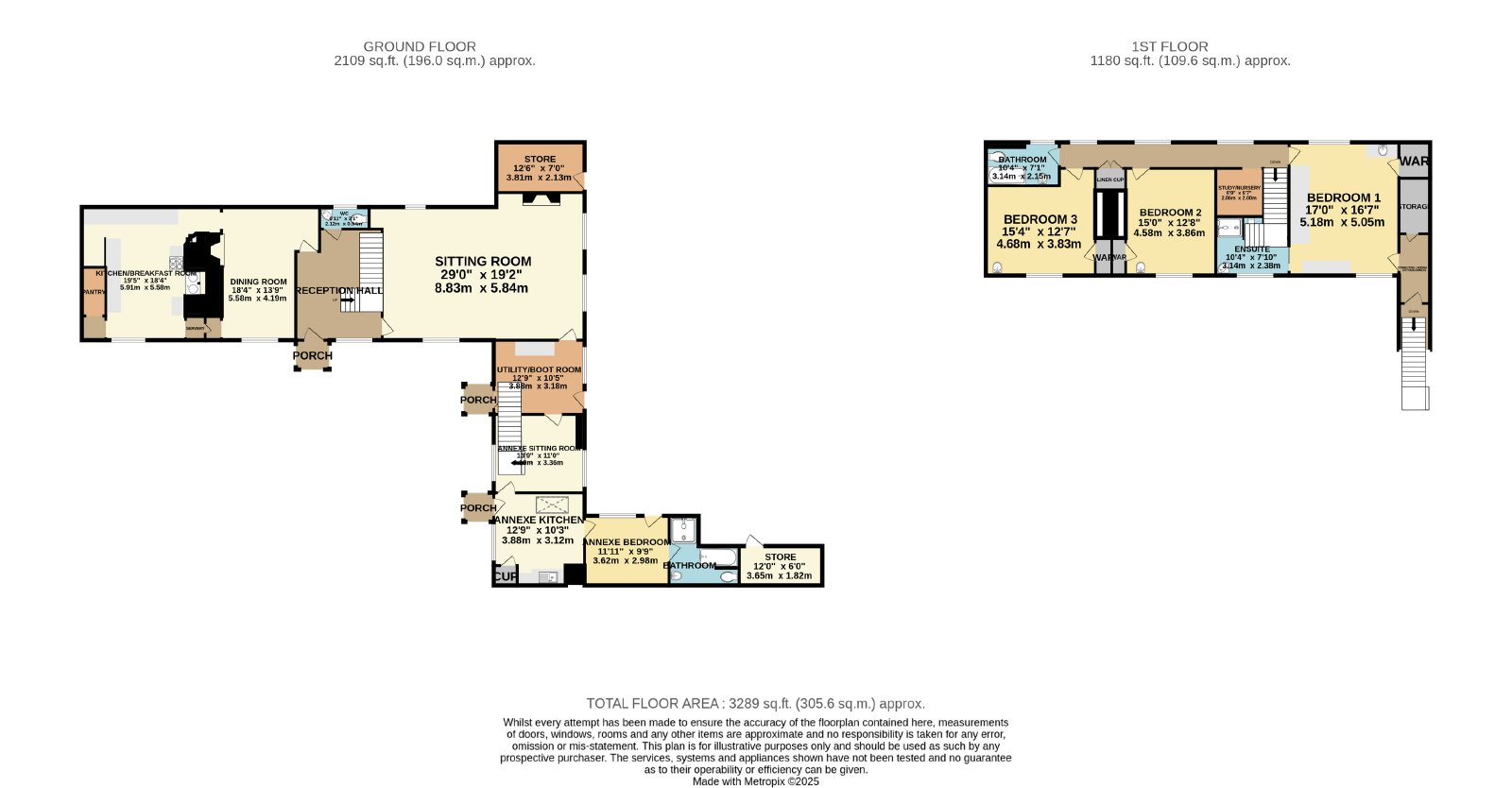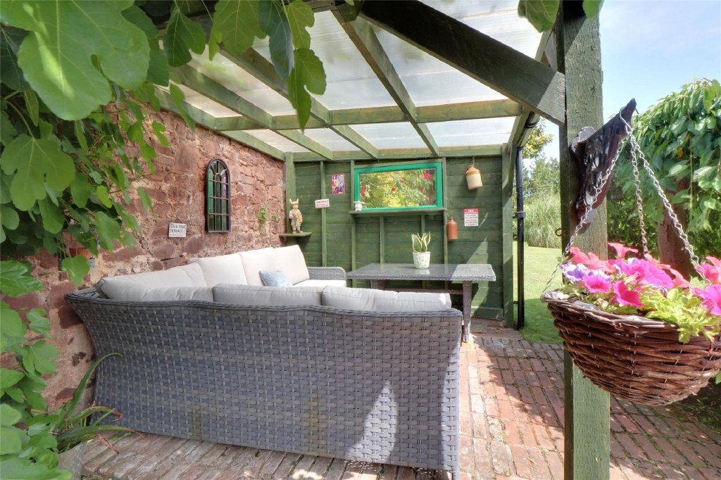 The living room is a generous, triple-aspect space with garden views and a wood-burning stove—perfect for cosy evenings. A rear boot room provides practical storage and links both front and rear gardens, as well as offering internal access to the adjoining annexe through an internal lobby.