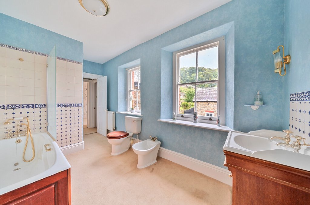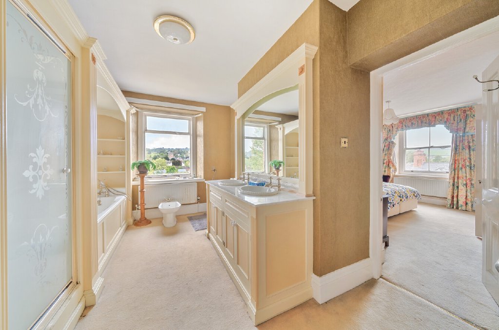 Bedroom 1 with views to the front elevation with access to the Jack and Jill bathroom with double sink, bide, W.C, shower and bath.