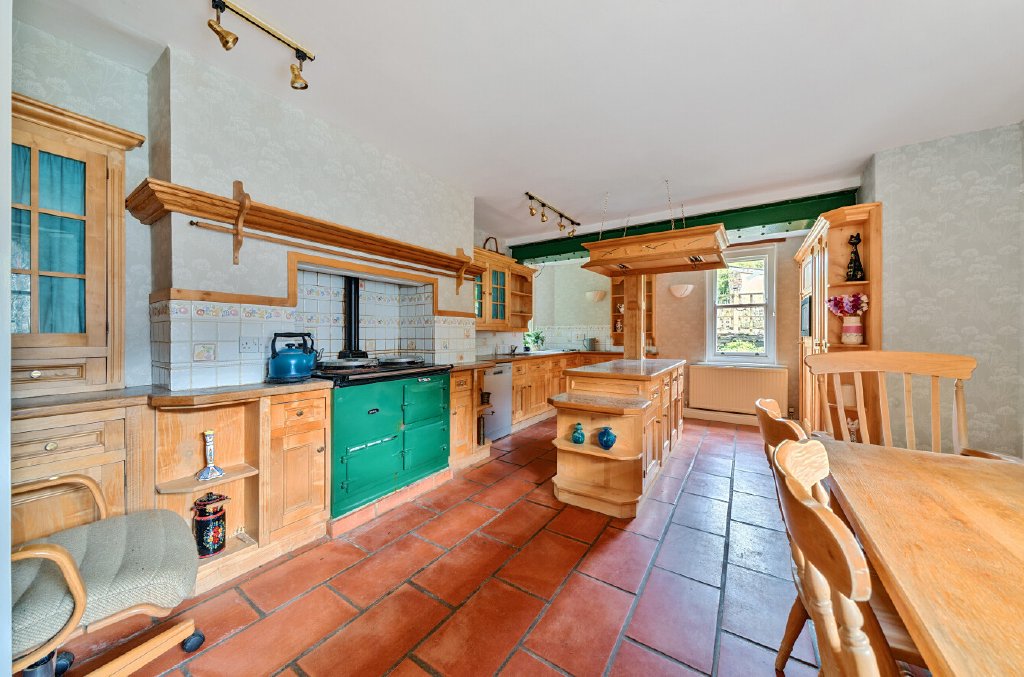 A door leads to the large well appointed open plan kitchen/diner with an extensive range of fitted wall and base units, space for dishwasher, central island with cupboards and oil fired AGA. A door opens into the rear utility with door to the rear, fitted units, space for white goods, tiled flooring and boiler.