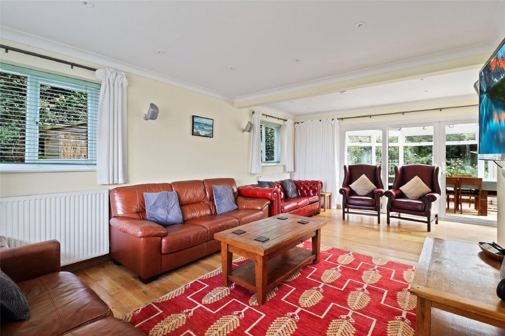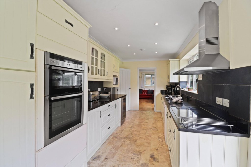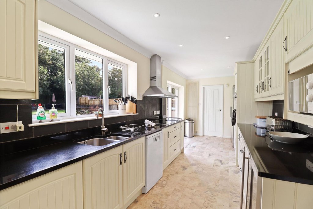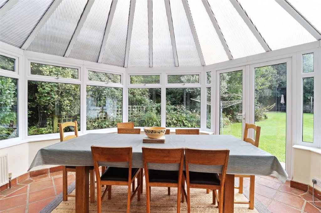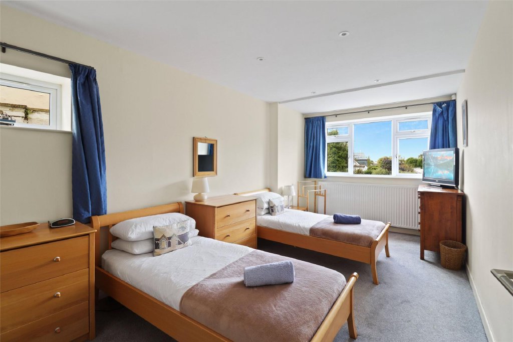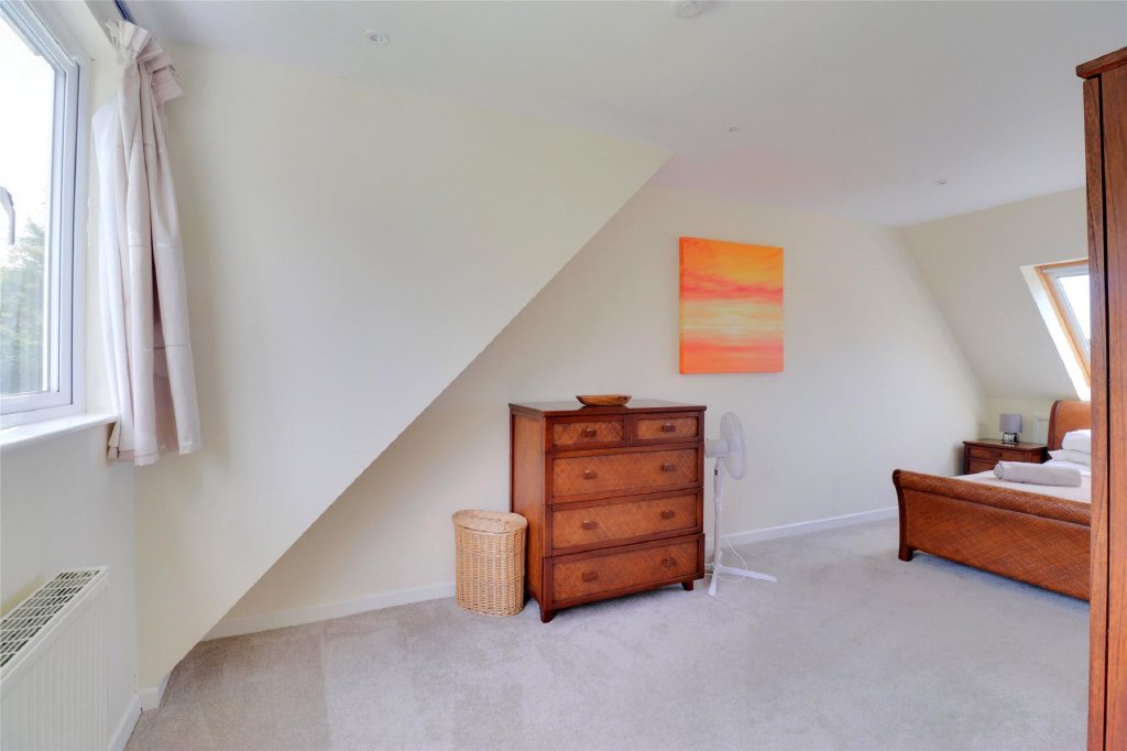 Situated at the end of a quiet cul-de-sac, the house is just a short walk from Croyde's famous surfing beach. Inside, the entrance hall leads to a spacious, triple-aspect living room with sliding doors to the conservatory. The large kitchen also opens to the rear garden and includes an integrated electric oven, hob, wine cooler, and appliances like a dishwasher and American-style fridge freezer, which are being left by the current owners. There’s also a utility room with space for a washing machine and dryer.