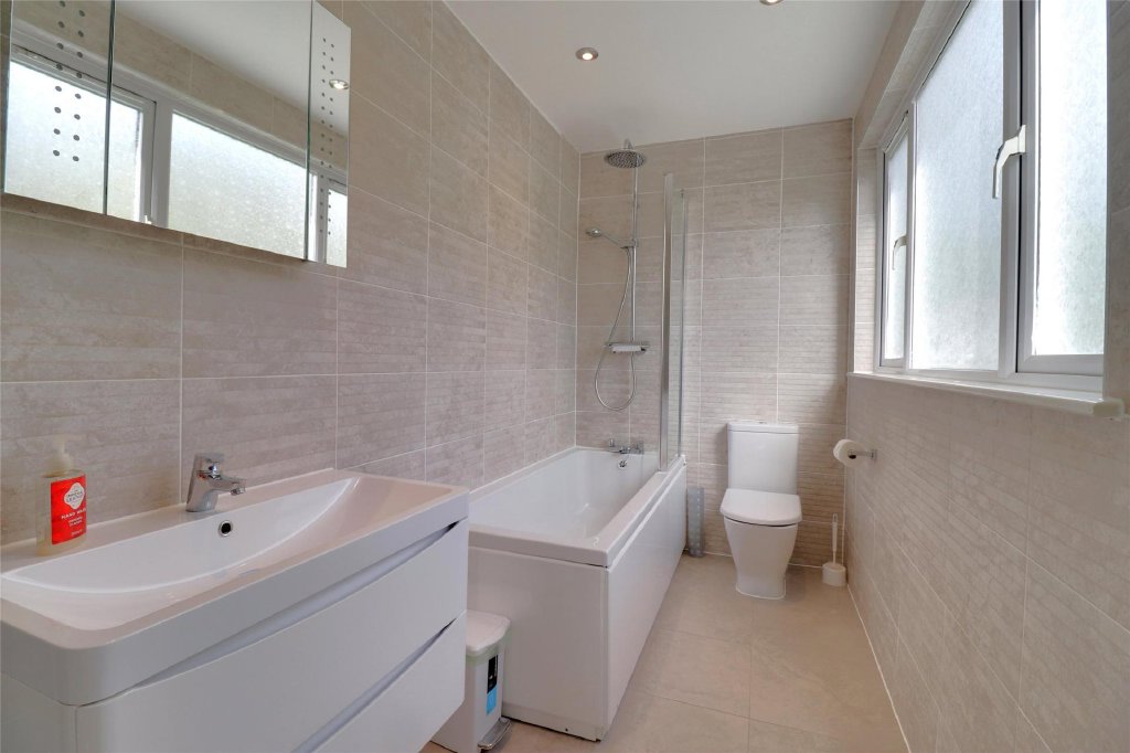 On the ground floor are two double bedrooms, along with a shower room. Upstairs, the landing is light-filled, with built-in storage. The master bedroom is dual-aspect with views of the dunes, and the three additional bedrooms are generously sized. The family bathroom features a bath with shower, modern basin, and heated towel rail.