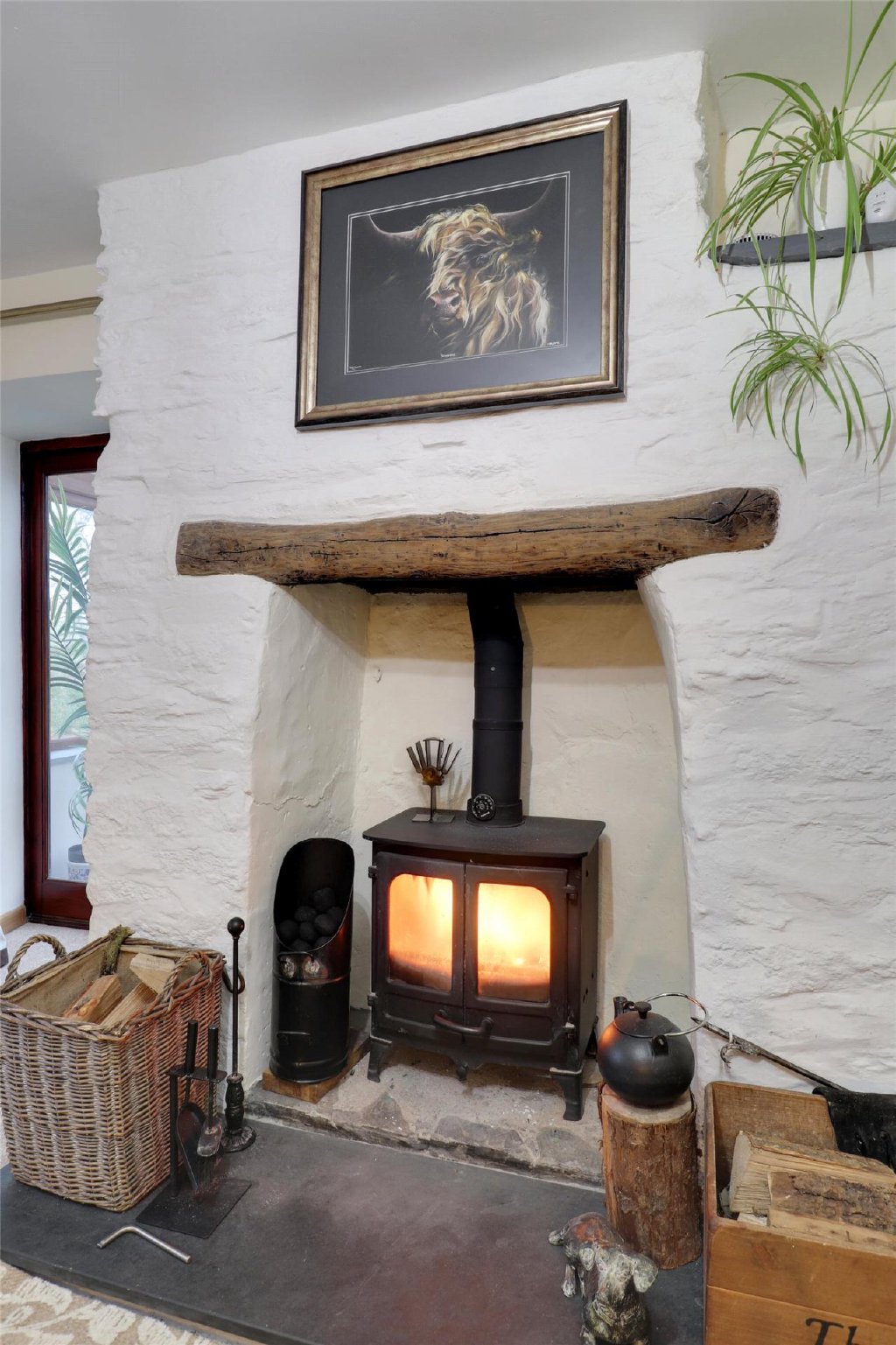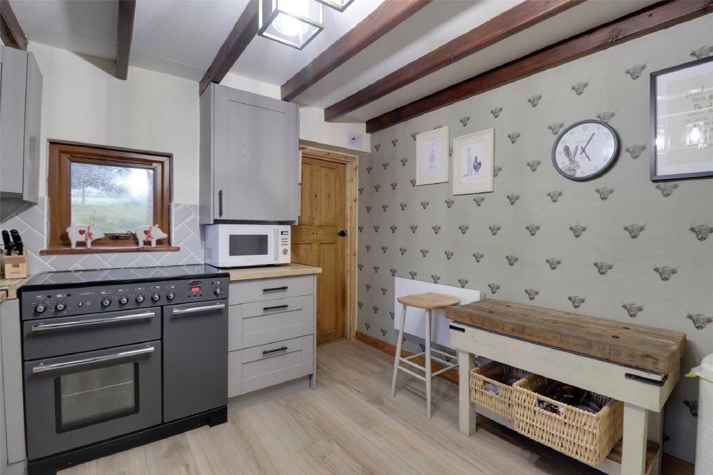 Butterwell is set in an area of outstanding natural beauty, covering almost an acre of land. The home dates back to the mid 1940s, with much of its original character preserved after being partially rebuilt. The property was extended in 1998. Highlights include beamed ceilings, granite and wood lintel fireplaces, exposed stonework, deep window sills, and traditional latched doors.
