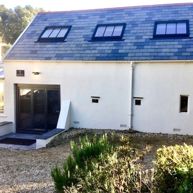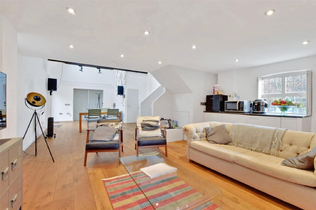 The main residence is a spacious and elegant 4-bedroom home, brimming with character and period features. Upon entering, the entrance hallway leads into a modern kitchen and breakfast room, complete with stylish slate work surfaces and attractive cabinetry. A door from the kitchen opens into a superb open plan living room/dining area, where large windows flood the room with natural light. A stunning fireplace adds to the room's charm.