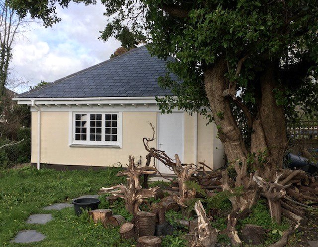 To the side of the property, there is a generous-sized workshop/store amongst an attractive orchard, nearly the size of a garage, providing ample space for storage or for use as a workshop or hobby area. This is a useful addition for anyone requiring extra space to store equipment or outdoor items.