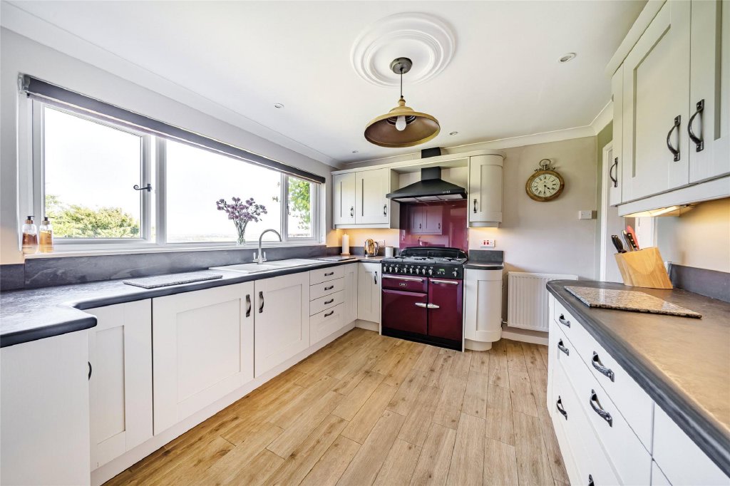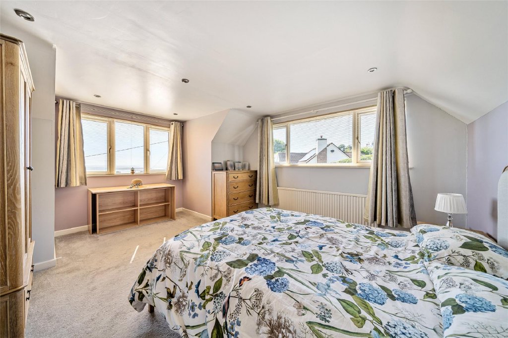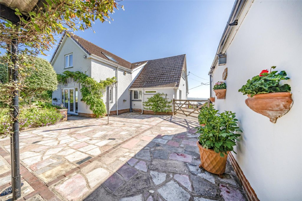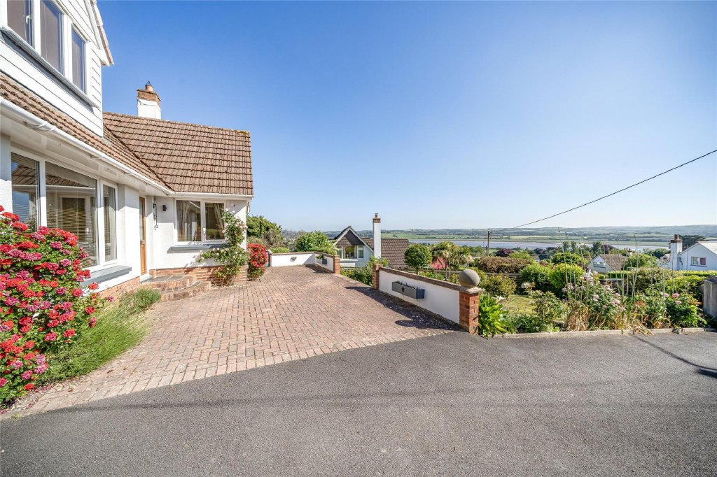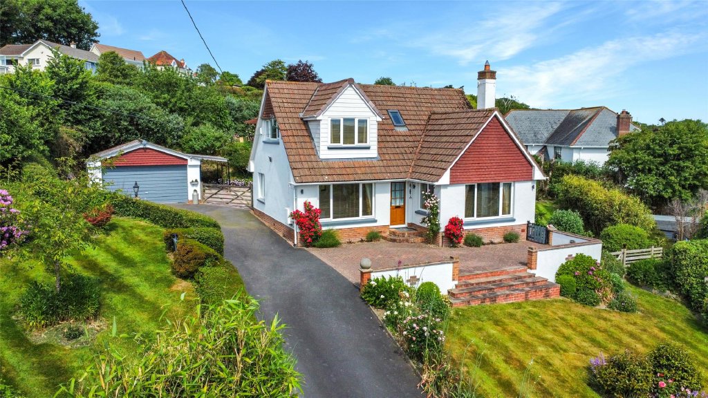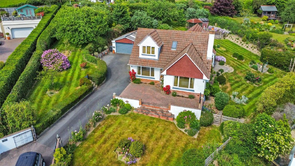 A beautifully presented 5 bedroom detached chalet bungalow set on an impressive plot of nearly half an acre in a highly sought after location. This spacious home features a modern kitchen/breakfast room, formal dining room, triple aspect sitting room with sea views, two ground-floor bedrooms, and three further bedrooms upstairs including a master with en-suite. The stunning gardens include a Mediterranean-style courtyard, productive orchard, and expansive lawns offering excellent privacy and far-reaching views. A detached double garage and ample driveway parking add to the appeal, while the large plot offers exciting potential for extension, garage conversion, or even a separate building plot (subject to planning). EPC Rating D