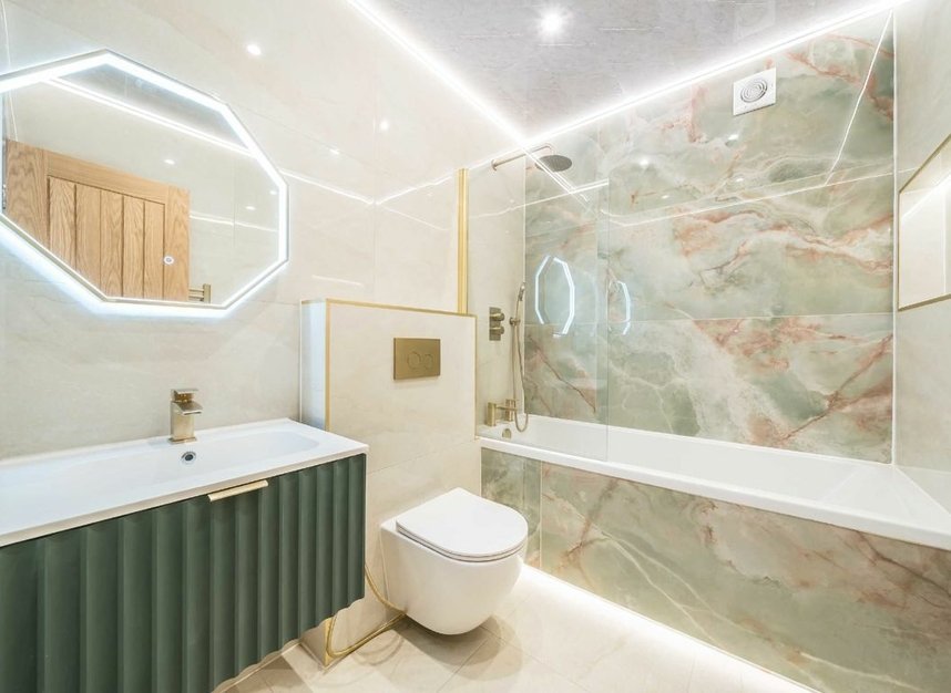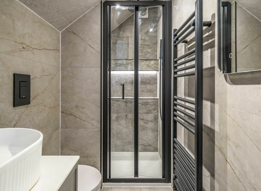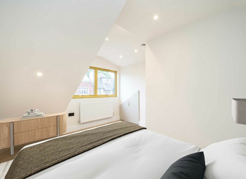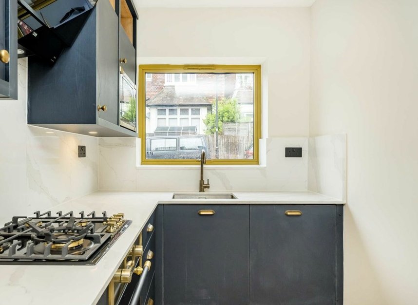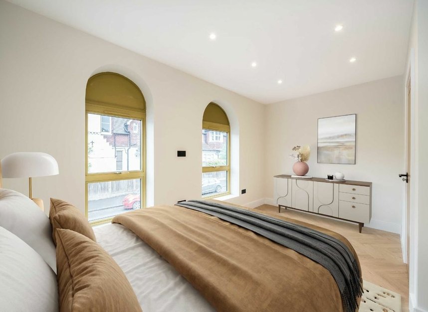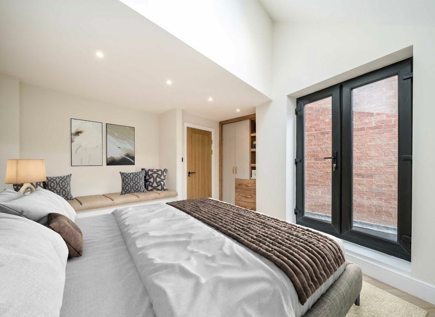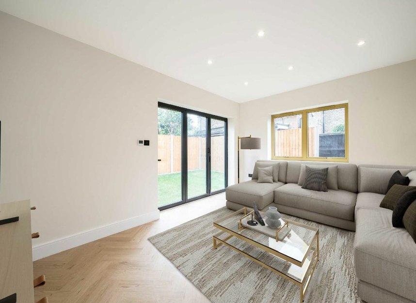 A freehold family home, featuring three bedrooms, two bathrooms with a private garden. The specification throughout is incredibly high, including German appliances and bespoke-designed bathrooms. This end of terrace home has a larger size plot with additional side garden.