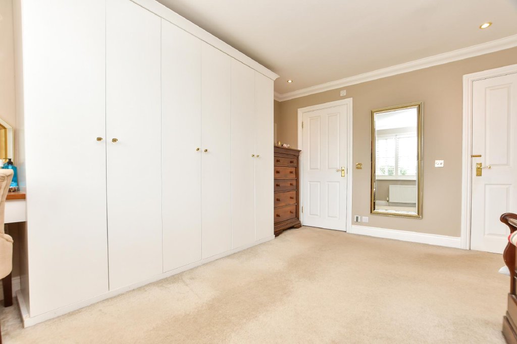These house a built in double slide and hide oven and combi microwave/oven, an integrated full height fridge and adjacent matching freezer as well as a drinks fridge, a pantry, a butler’s sink with a filter tap and a dishwasher. There is also a large central island/breakfast bar with a five ring induction hob and space for four stools. An adjacent and equally well fitted utility room includes hanging and storage space as well as a concealed washing machine and tumble dryer and a door to the side patio.