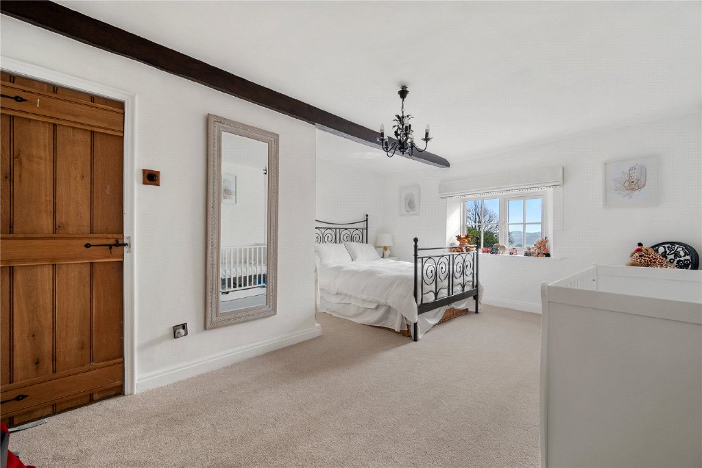 Adjacent to the kitchen is the inviting dining room, offering a perfect setting for family meals and entertaining guests. This rooms features a wood-burning stove, enhancing relaxation and comfort. The space flows seamlessly into the reception room, where original beams and a further wood-burning stove create a warm and welcoming atmosphere. The home also features a snug with an original 1700s working fireplace, providing an additional space for relaxation and cozy gatherings.