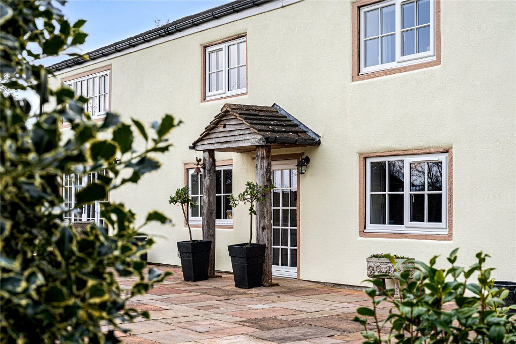 Outside, the property continues to impress with its 1.3-acre grounds, which offer ample space for outdoor activities and enjoy stunning views over the adjacent farmland. A charming pond adds to the peaceful ambiance, while an outbuilding, seating area, and hot tub provide additional outdoor living space for relaxation and entertainment.