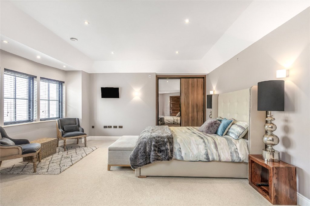 A walk-in dressing room provides ample storage, offering a beautifully appointed space to organise and display clothing and accessories. The luxurious en-suite bathroom is equally impressive, featuring elegant fittings and a spa-like ambiance, perfect for relaxation.