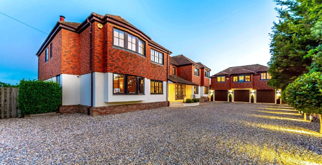 A triple garage and generous gated driveway ensure ample secure parking for multiple vehicles.