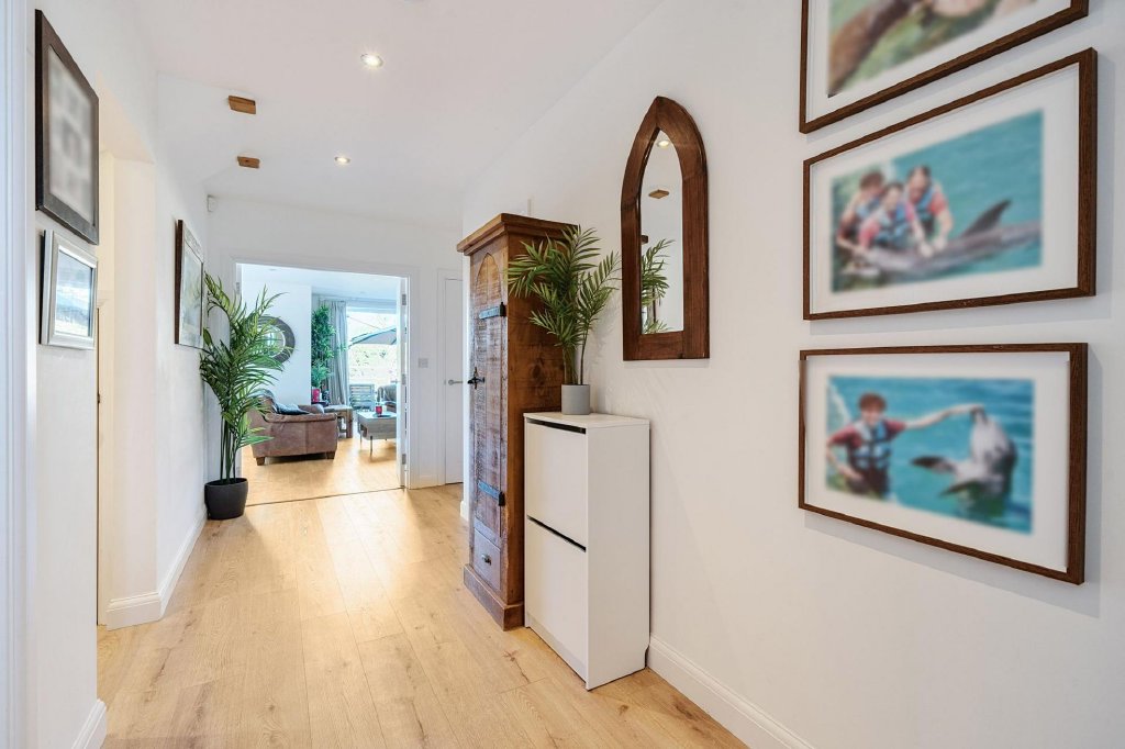 On the borders between Kent and Surrey, close to many areas of natural beauty, Merlin Drive offers a wonderful opportunity to acquire a stunning barn style home in a semi rural location. Surrounded by local farmland and with distant views to the North, Oxted and Edenbridge town provide charming local shops and restaurants supported by both Morrisons and Waitrose supermarkets, both centres just over two miles away. Rail links are excellent connecting to various London termini Oxted and Hurst Green stations.