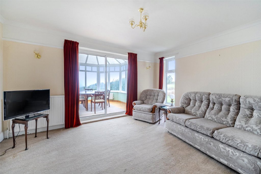 Occupying a substantial plot, Downtop is approached via a private driveway with generous parking for up to four vehicles, along with a large double garage ideal for secure storage or future development potential (subject to planning).