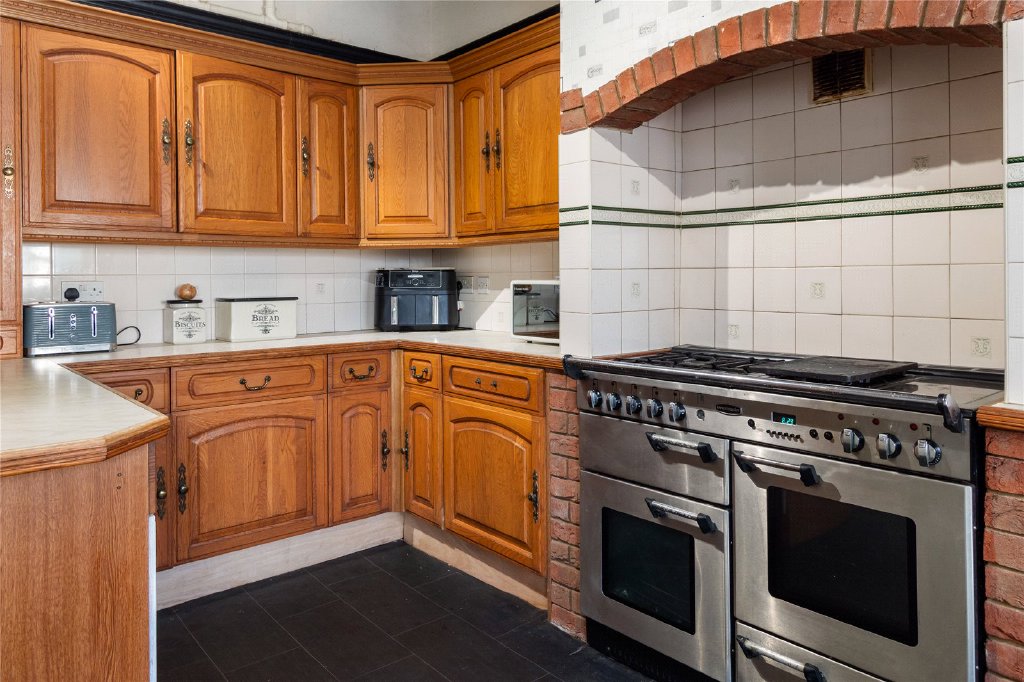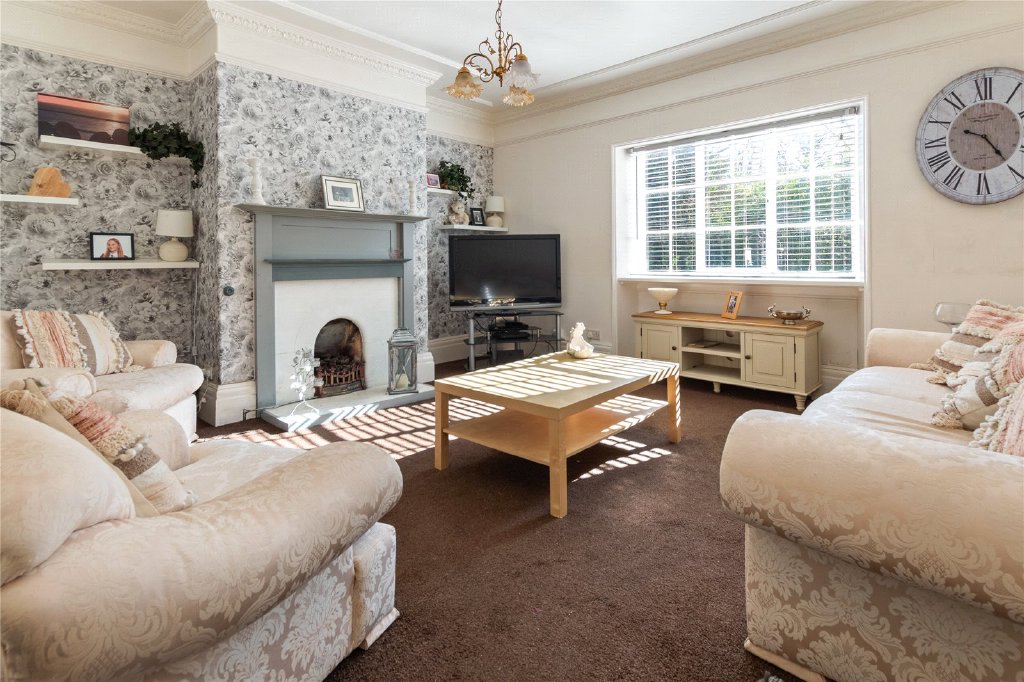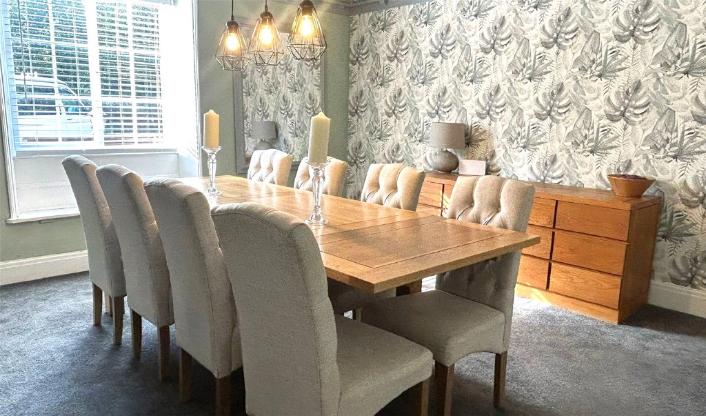 Leading off the kitchen, the formal dining room provides an elegant setting for entertaining guests or hosting family celebrations. A large window floods the room with natural light, while traditional features add a sense of grandeur to every occasion. The additional reception rooms offer flexible living space, ideal for a cosy sitting room, study, or playroom.