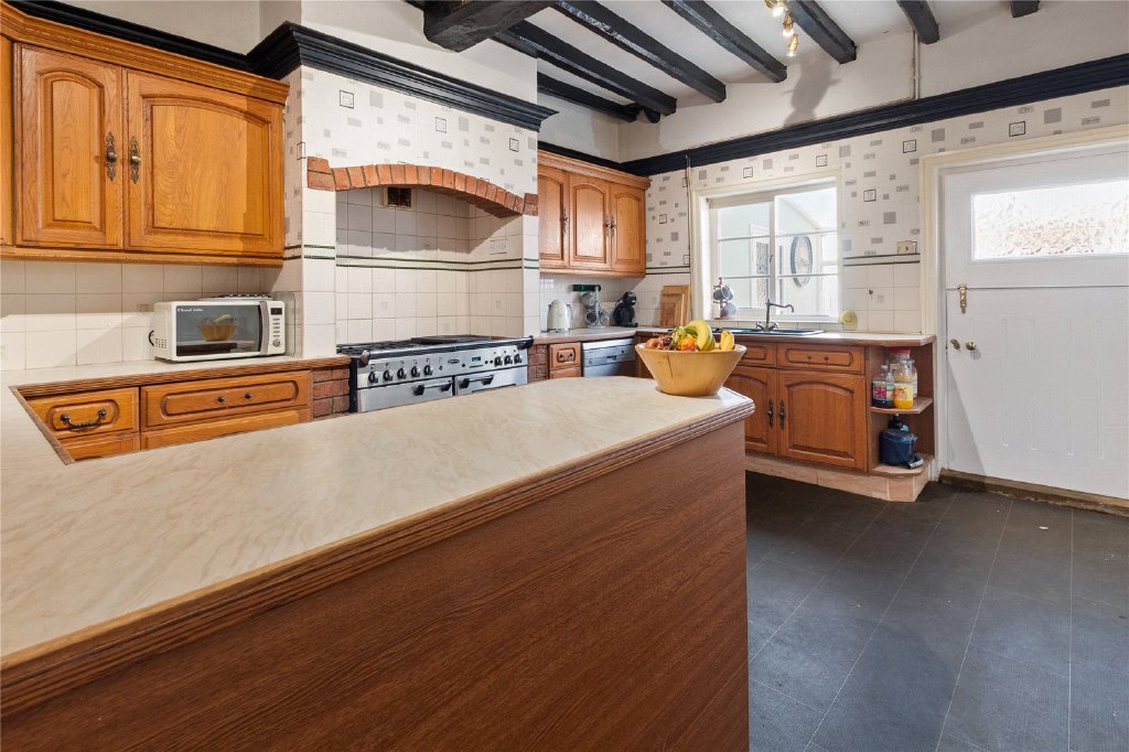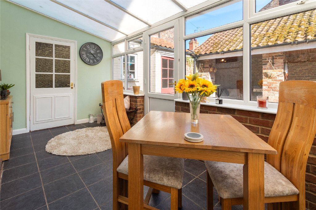 The spacious kitchen combines modern convenience with country charm and features a casual breakfast area, perfect for everyday family meals or a morning coffee. From here, a door opens into the conservatory, a bright and welcoming space ideal for relaxing year-round.