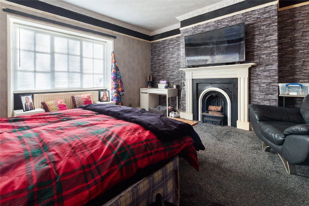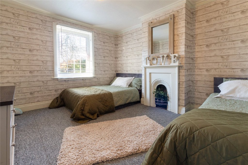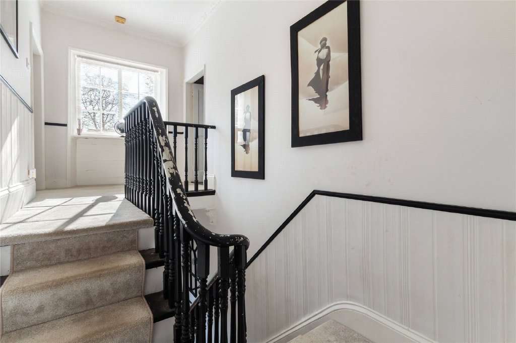 Upstairs, the property offers four well-proportioned bedrooms, each filled with natural light and period charm. The principal bedroom is a generous retreat, complete with a modern, spacious ensuite bathroom featuring a freestanding bath, twin sinks, and a large glazed shower enclosure, creating a luxurious space to unwind.
