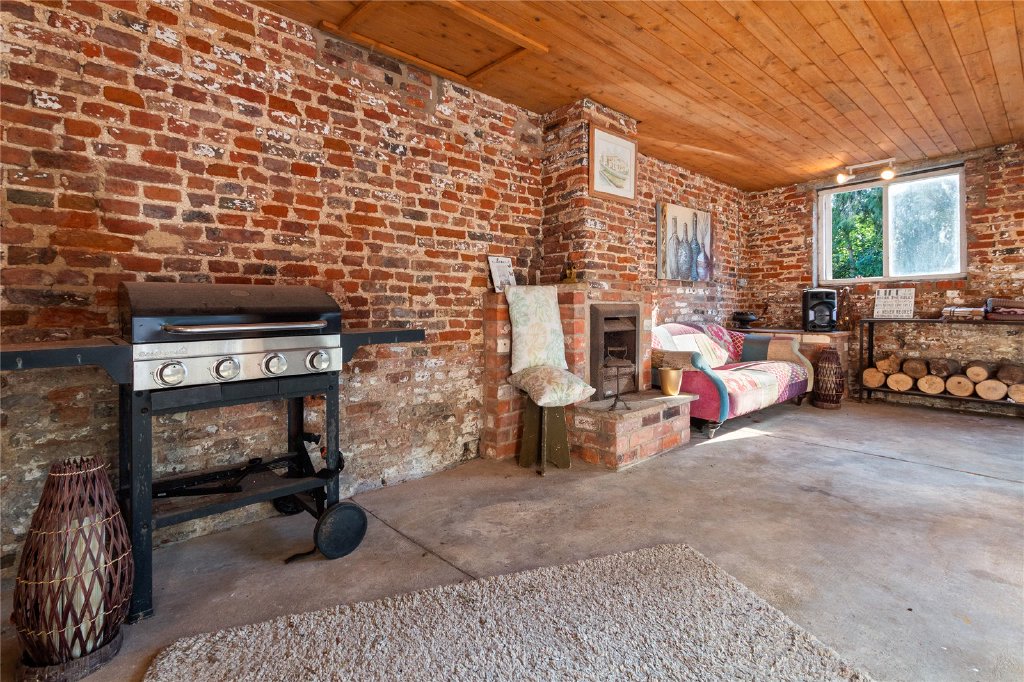 Mature trees frame the generous plot, providing privacy and a real sense of seclusion. The landscaped gardens blend lawned areas, established planting, and seating spaces, perfect for family gatherings or relaxing on summer evenings. Within the courtyard area, you’ll find a covered barbecue area with a seating space, the ideal spot for al fresco dining and entertaining, whatever the weather. Conveniently nearby is an outside WC, providing added practicality for outdoor living.