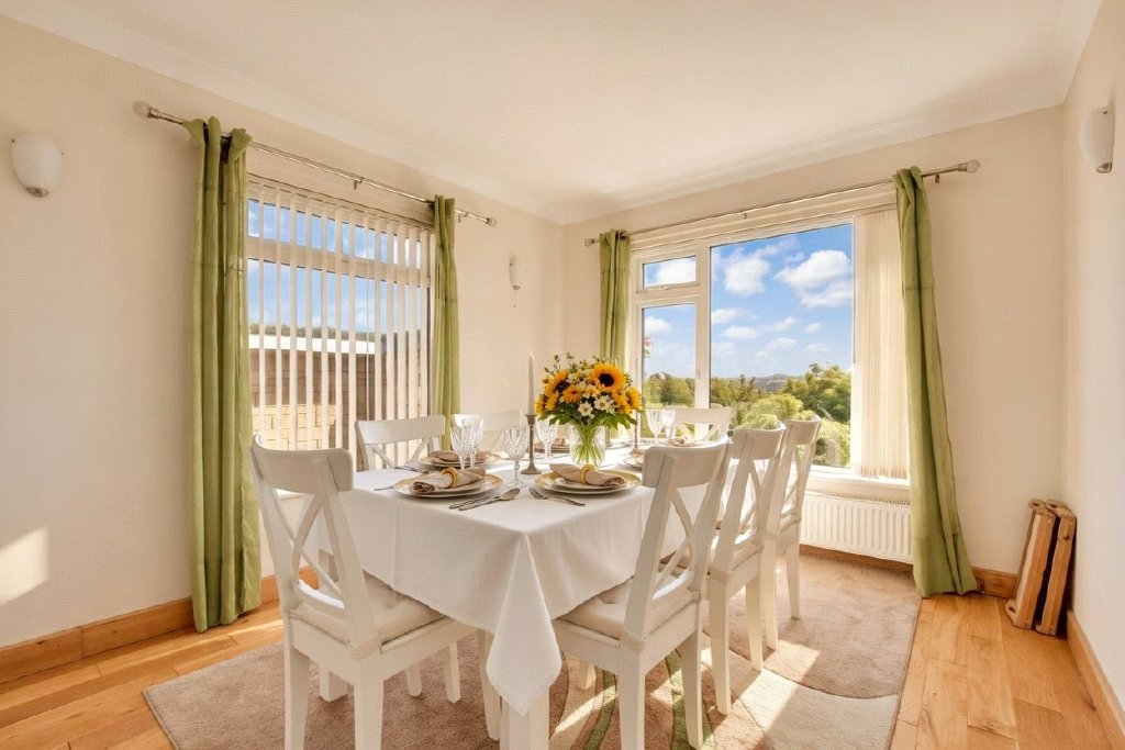 Internally, the property is equally as impressive. A spacious and welcoming entrance hall sets the tone, with doors leading to the main living areas. A generous sitting room enjoys an abundance of natural light from the large picture window that overlooks the front garden. This is a warm and inviting space – perfect for family relaxation or entertaining guests.