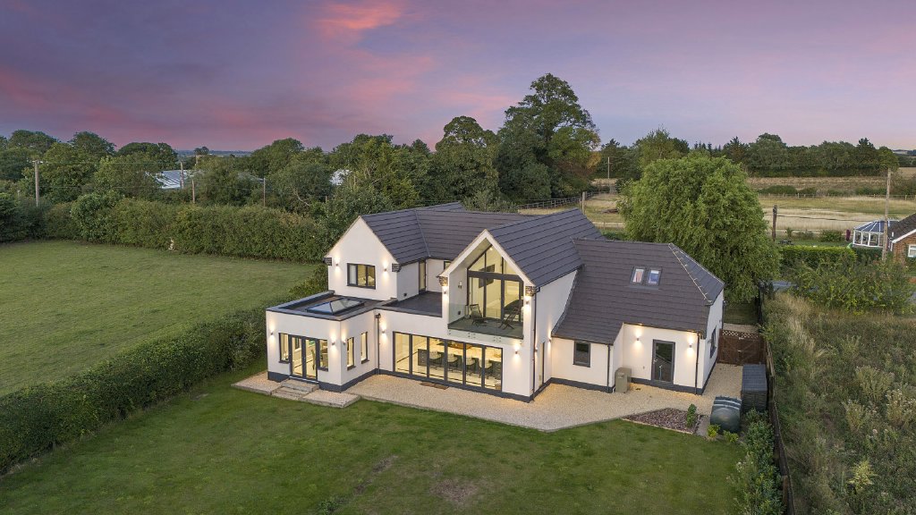 Set well back from the road, the home offers a generous gravel driveway for ample parking. The rear garden enjoys excellent sun throughout the day and offers beautiful sunset views across open countryside, creating a truly idyllic setting for modern rural living.