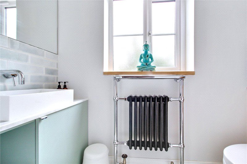 Upstairs, the principal suite is conceived as a private sanctuary. Light-filled and beautifully proportioned, it offers discreet bespoke storage and a luxurious en suite featuring a freestanding bath, twin basins and a generous shower enclosure — a space to unwind at the end of the day. A second en suite bedroom provides excellent guest accommodation, while two further double bedrooms share a stylish family bathroom, making the layout ideal for growing families or visiting friends.